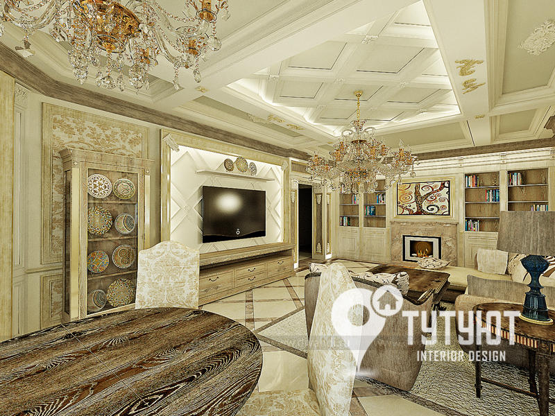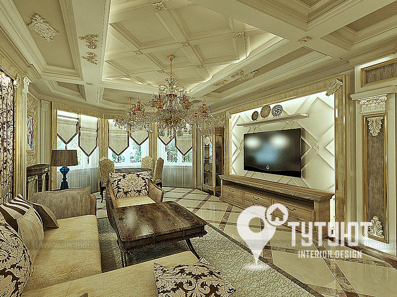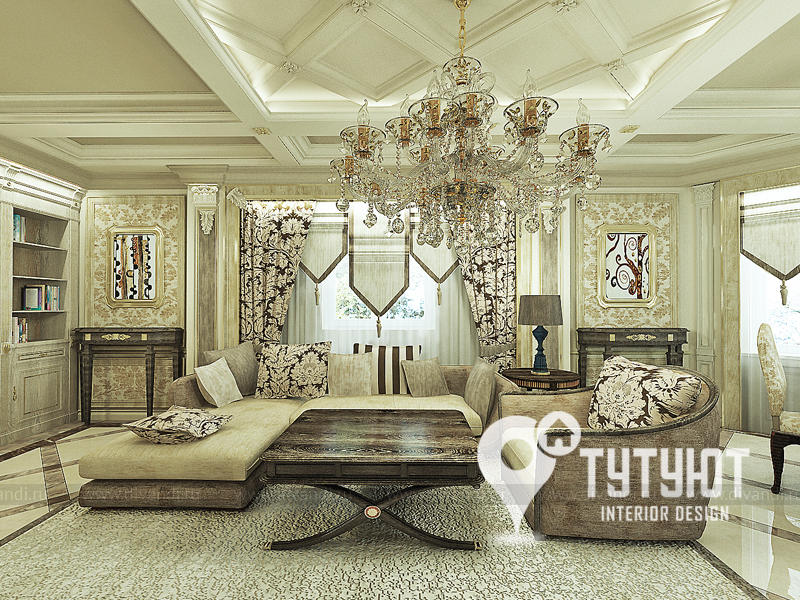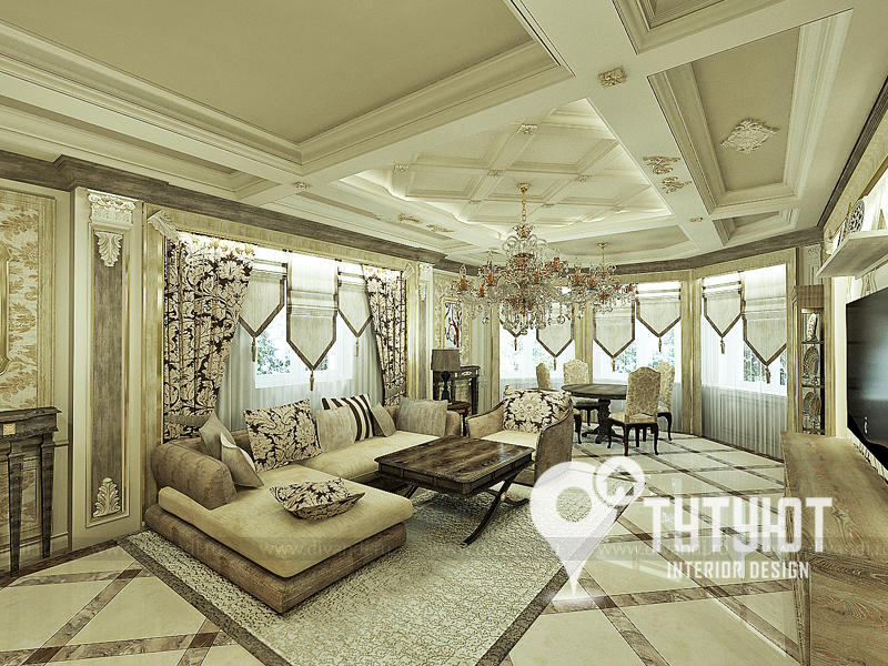 Шикарная гостиная в загородном доме, построенном в пригороде Екатеринбурга.