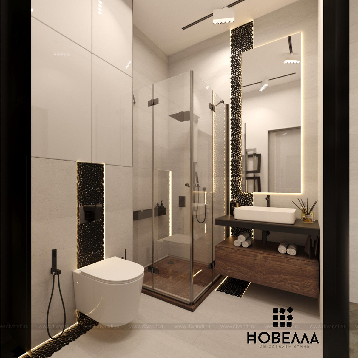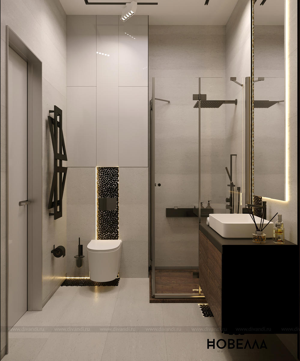 Клубный дом Ривьера. Гостевой санузел, с матовой черной галькой