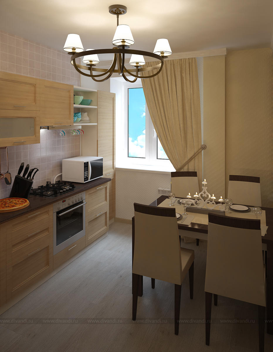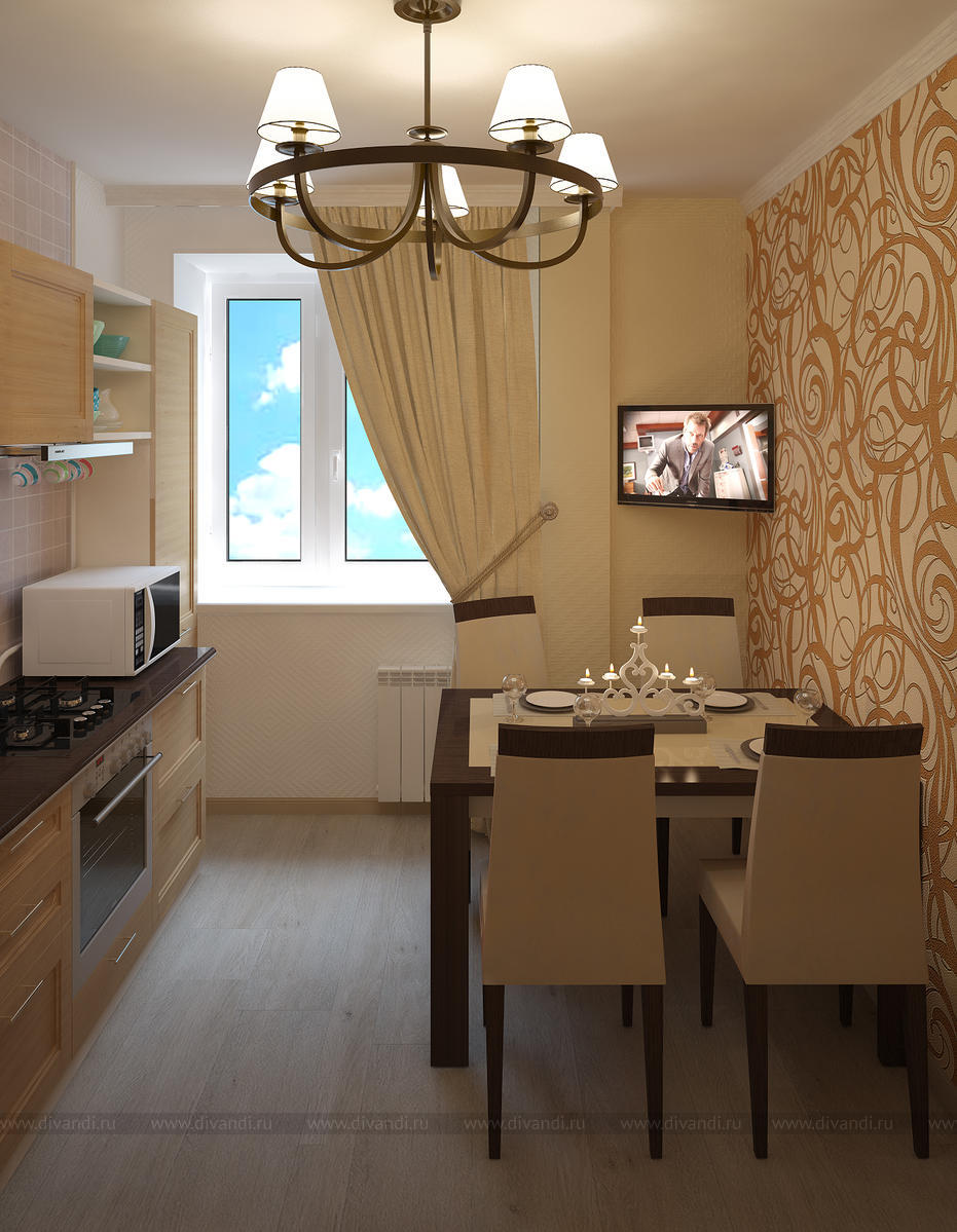 Кухня в теплых тонах - кофе, шоколада и сливочного крема.