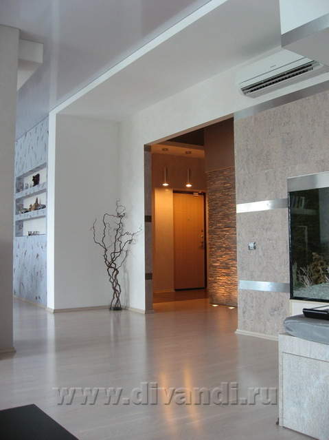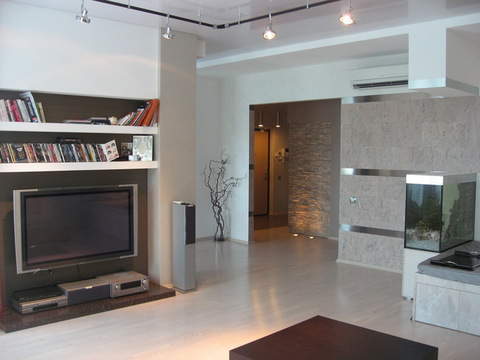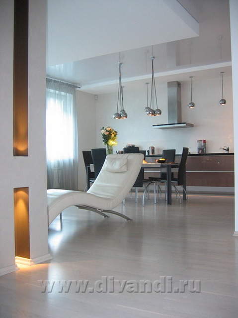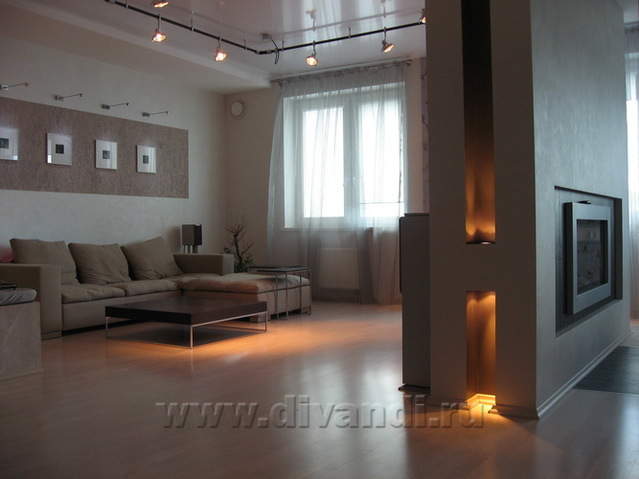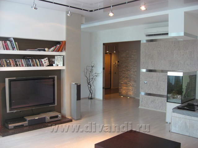 Гостинная для успешных молодых людей. Заказчики хотели видеть современный, комфортный интерьер. Из предложенных вариантов была выбрана открытая планировка гостинной,ее площадь состаляет 70 кв.м..Она поделена на несколько зон, каждой из которой отведена своя роль в создании комфортного и уютного интерьера. В такой свободной планировке каждый элемент должен быть не только функциональным (будь то подиум для отдыха или кухня),красивим.