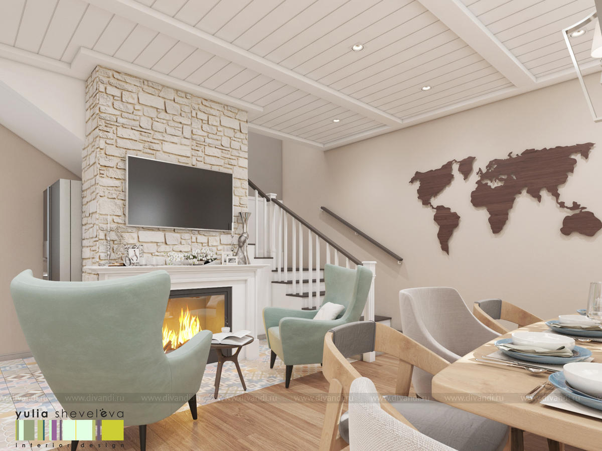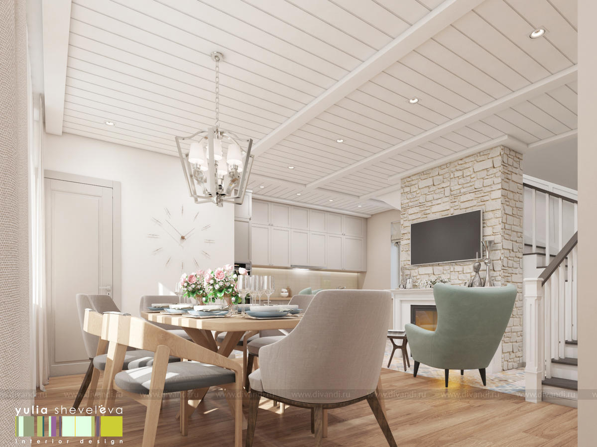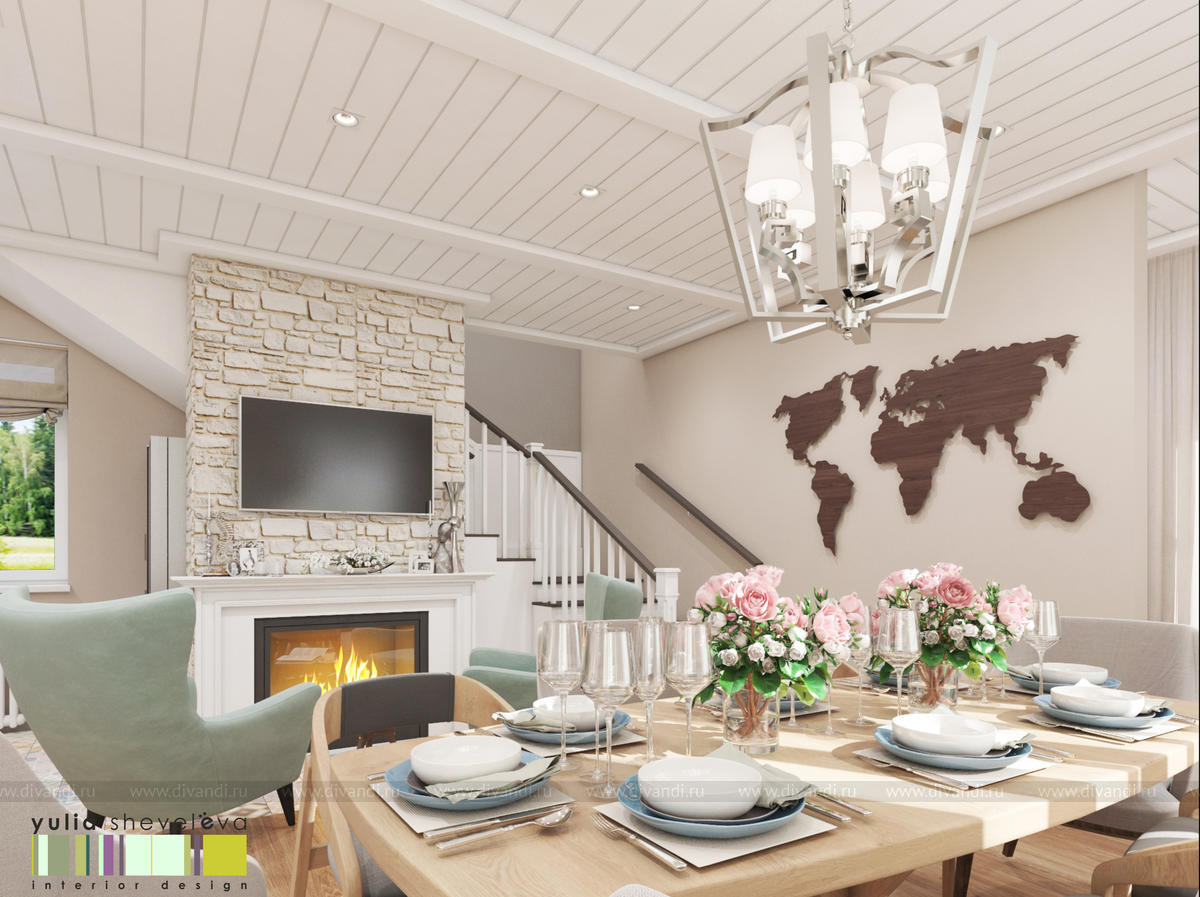 Дизайн двухэтажного гостевого дома в Москве в эклектичном стиле. Интерьер выполнен в теплой гамме и светлых тонах.