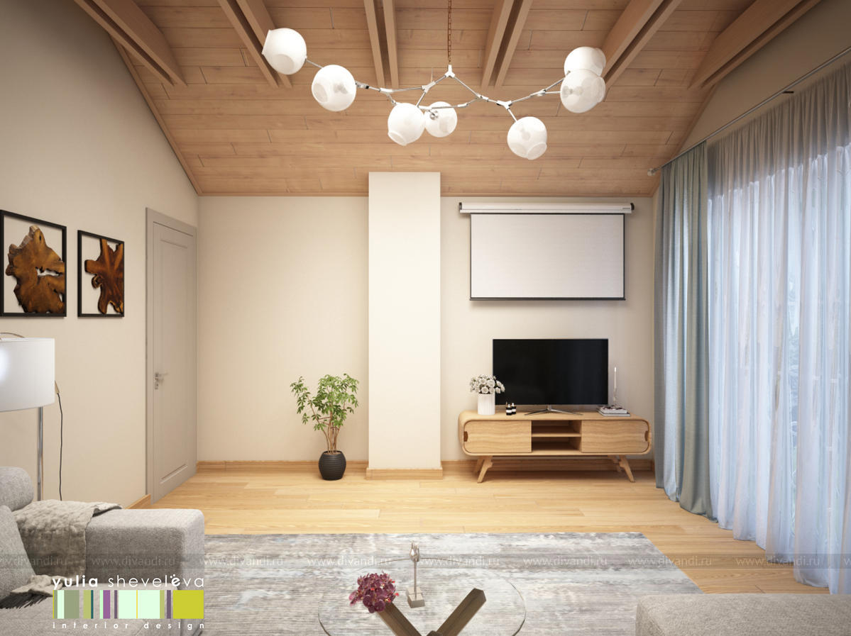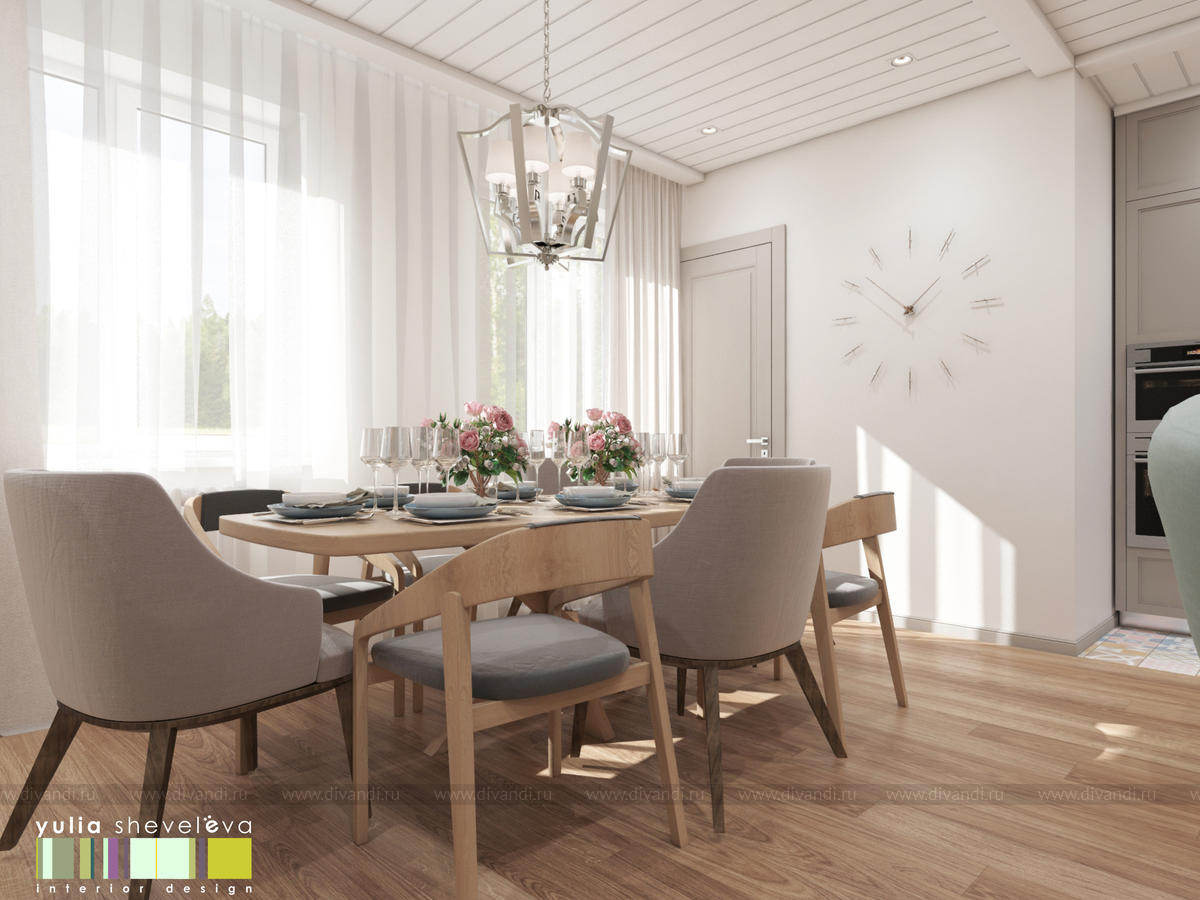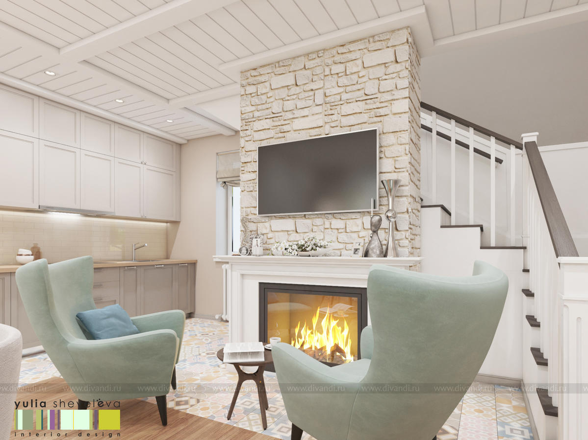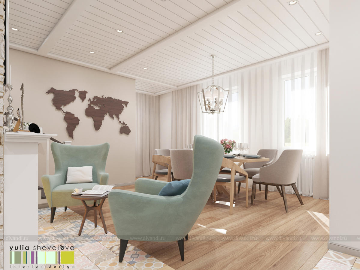 Дизайн двухэтажного гостевого дома в Москве в эклектичном стиле. Интерьер выполнен в теплой гамме и светлых тонах.