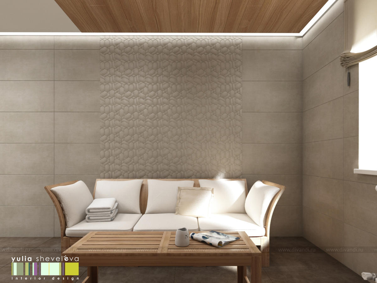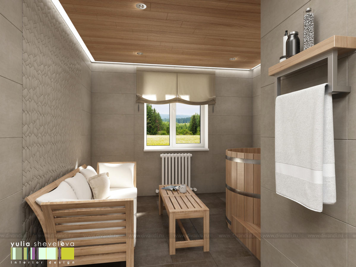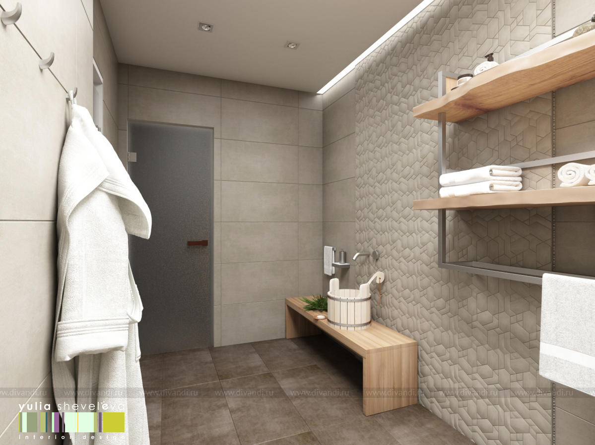 В спа-зоне спроектирована сауна, купель, санузел и места для отдыха.