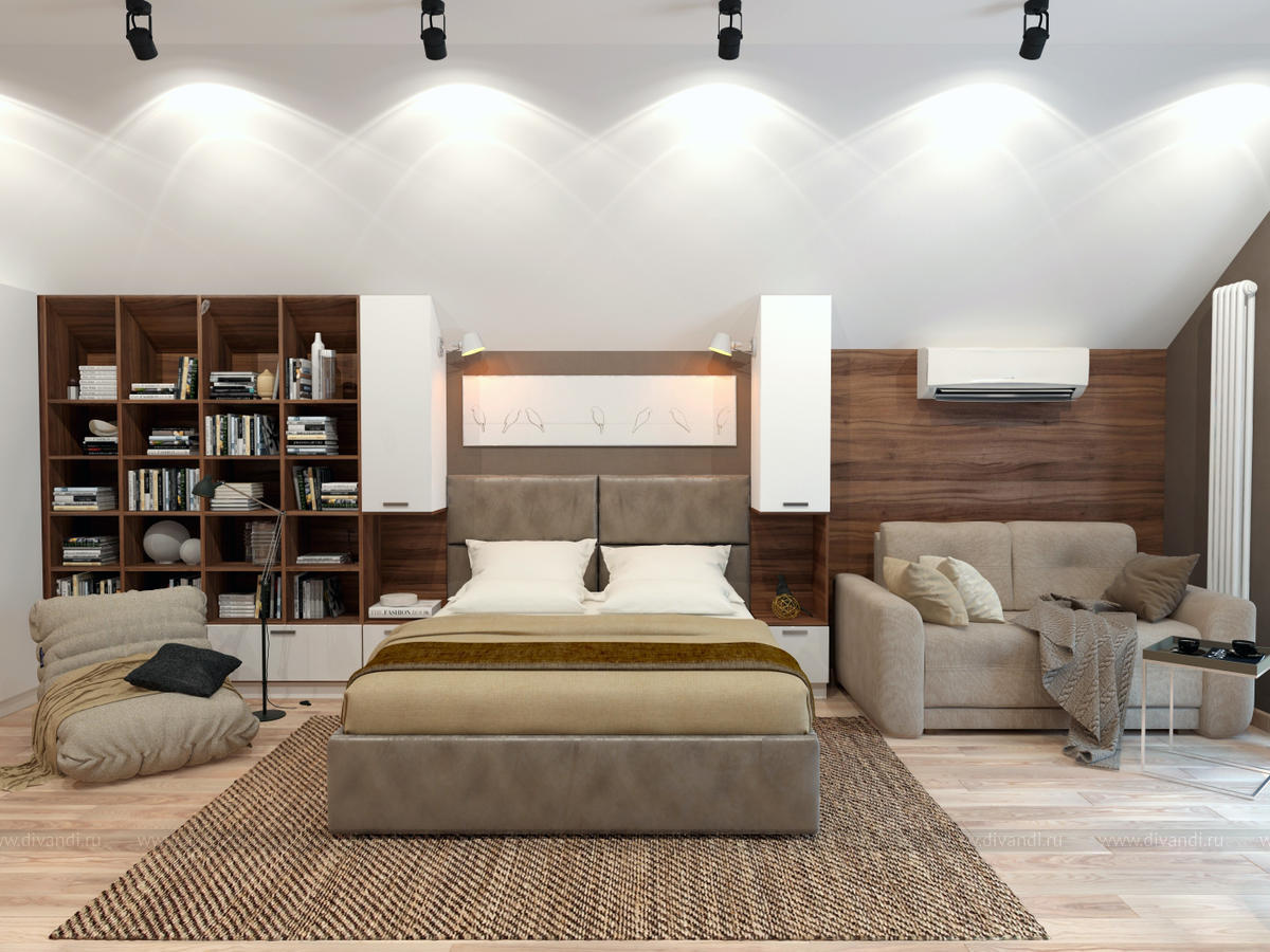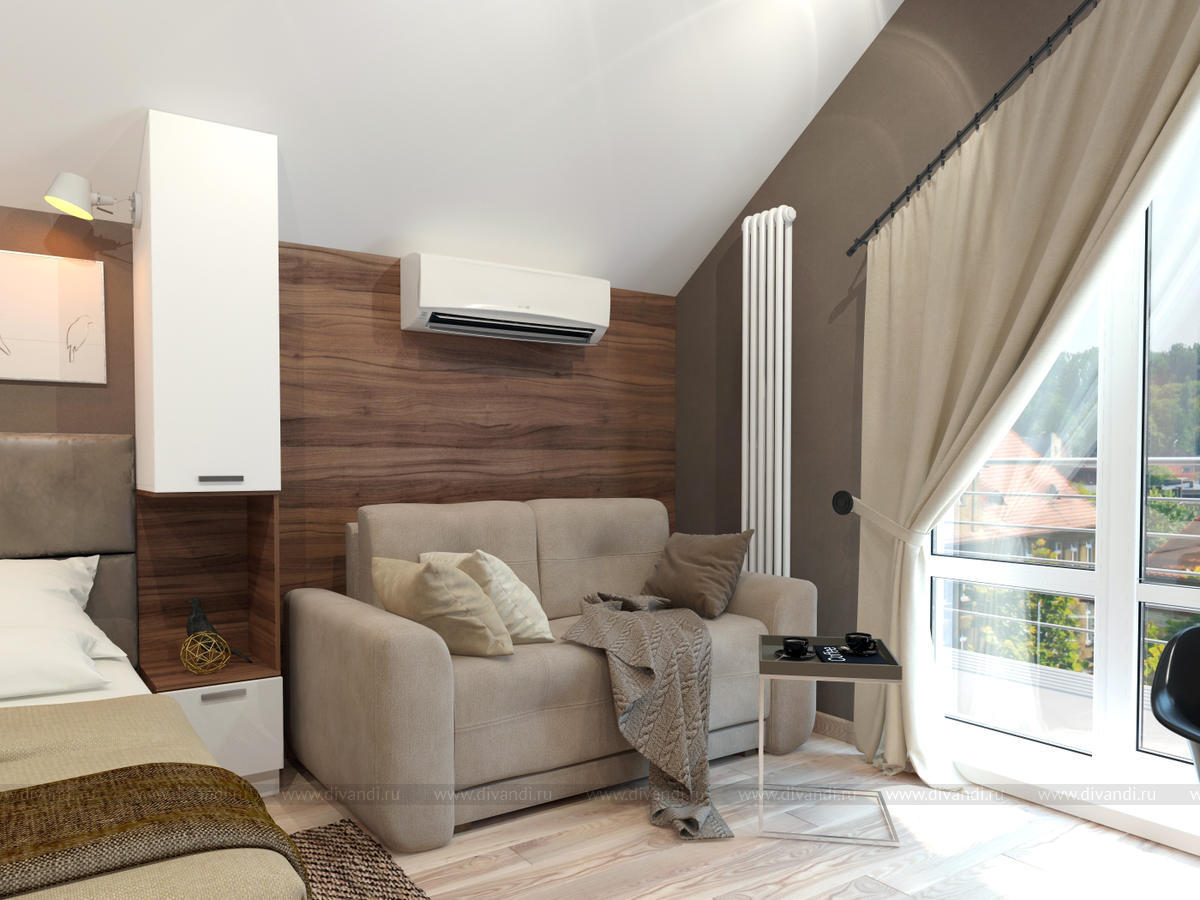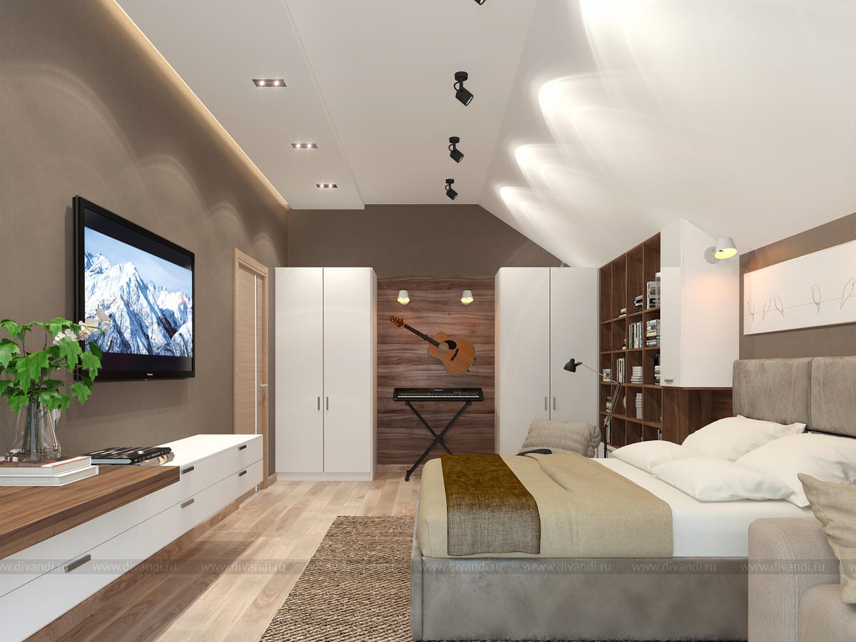 Проект комната для молодой девушки , занимающейся музыкой. Выполнена в спокойных бежевых тонах.