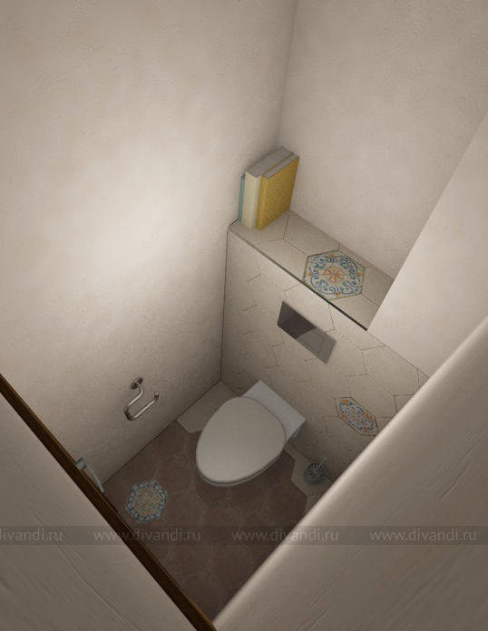 Сочетание итальянской декоративной штукатурки и красивой плитки - зрительно расширило пространство компактного сан.узла)
