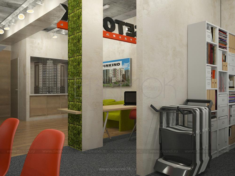Разрабатывая дизайн интерьера офиса, важно ориентироваться на специфику деятельности компании. Этот офис принадлежит компании, которая будет продавать квартиры в новостройках!