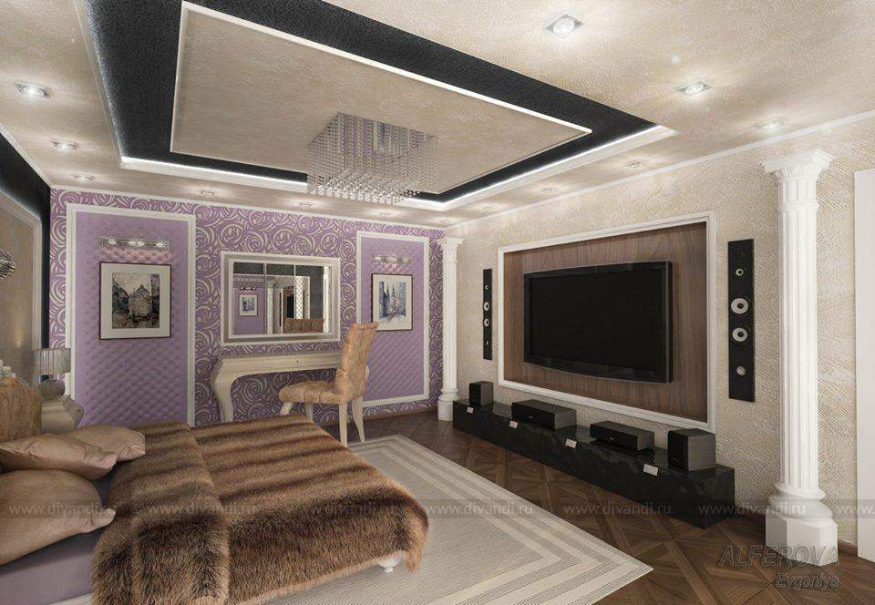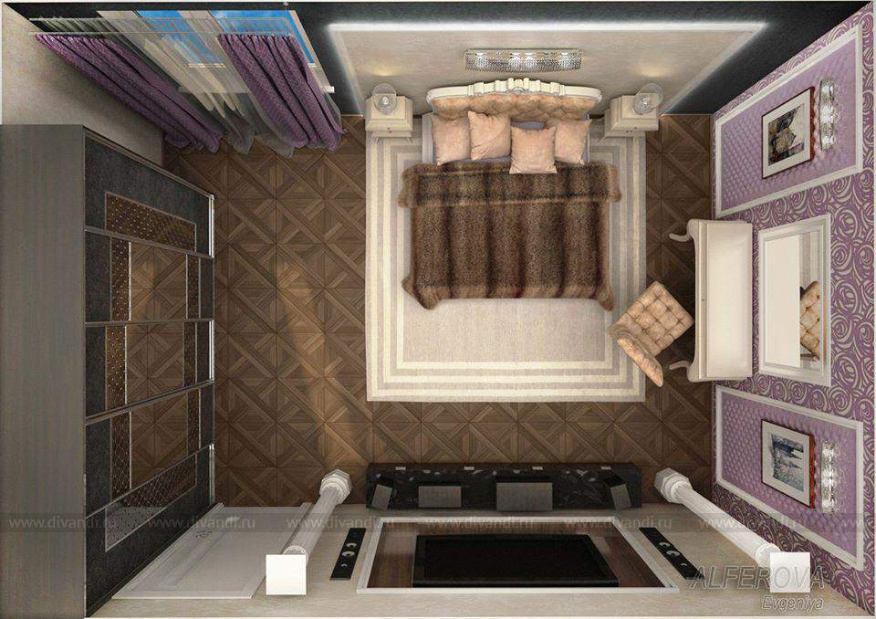 Фиолетовый цвет символ власти, величества, вдохновения, многим он нравится и многие хотят видеть именно этот цвет в интерьере. Но он достаточно холодный цвет, поэтому в проекте представлены сочетание именно таких цветов как бежевый - он дает много тепла в интерьере, а так же черный цвет, который глушит фиолетовый, не давая быть ему слишком навязчивым, раздражительным.