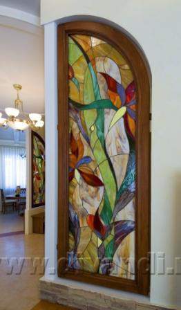 Первоначально в доме не было прихожей, чтобы создать эту необходимую зону, дизайнеры применили симметричные перегородки с витражными вставками. Яркое цветовое пятно стало своеобразным акцентом в интерьере первого этажа.