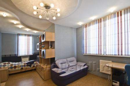 Интерьеры помещений разделены условно, легкими витражными перегородками, что позволило сохранить объем, сделать помещение светлым и воздушным.