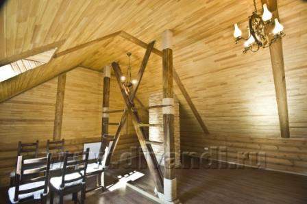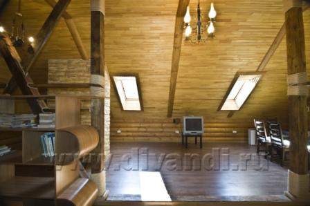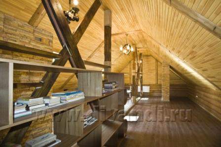 А чердак – дополнительная комната, предназначенная для активных игр детей. Аккуратно обшитая доской крыша сама по себе довольно красива, осталось дополнить образ, стилизовав опорные стойки кровли под конструктивные элементы палубы корабля и облицевав трубу камина декоративным камнем.