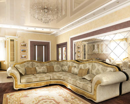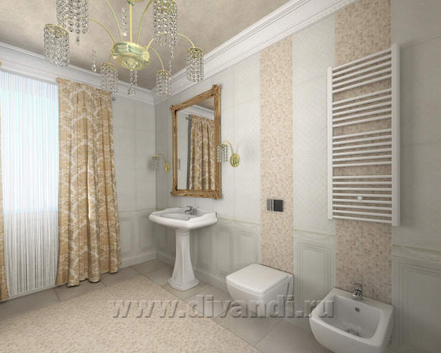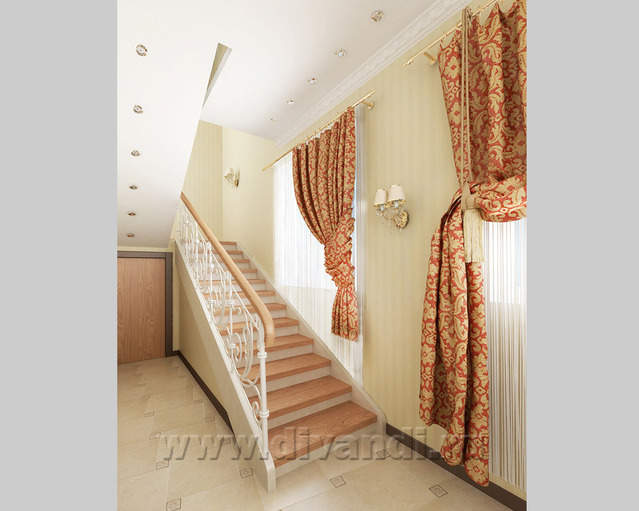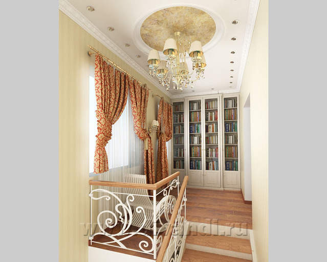Приступая к работе на данном объекте, кроме дизайна интерьера коттеджа, были разработаны: ландшафтный дизайн участка (см. в разделе Коттеджи), фасады коттеджа, бани, гаража и беседки. Планировка дома была разработана не нашими архитекторами однако кардинальных изменений она не получила и была раззонирована по требованиям клиента. Интерьеры решены в пастельных классических тонах, контрастом в данном проекте можно назвать пол в гостиной (ламинат бельгийской фабрики Balterio коллекция Венге Африка) на первом этаже, который был поддержан контрастом на стенах из декоративной штукатурки. Светильники в данном проекте необходимо было подобрать лёгкие и изящные, чтобы они вписались в общую концепцию дома. (Светильники фабрики WUNDERLICHT, Германия). Дизайн кухни был разработан нашими дизайнерами, а реализацию взяла на себя Мебельная фирма «Кедр». Клиенту хотелось, чтобы весь функционал кухни был выстроен в одну прямую линию, а на противоположной стене расположился холодильник и буфет.