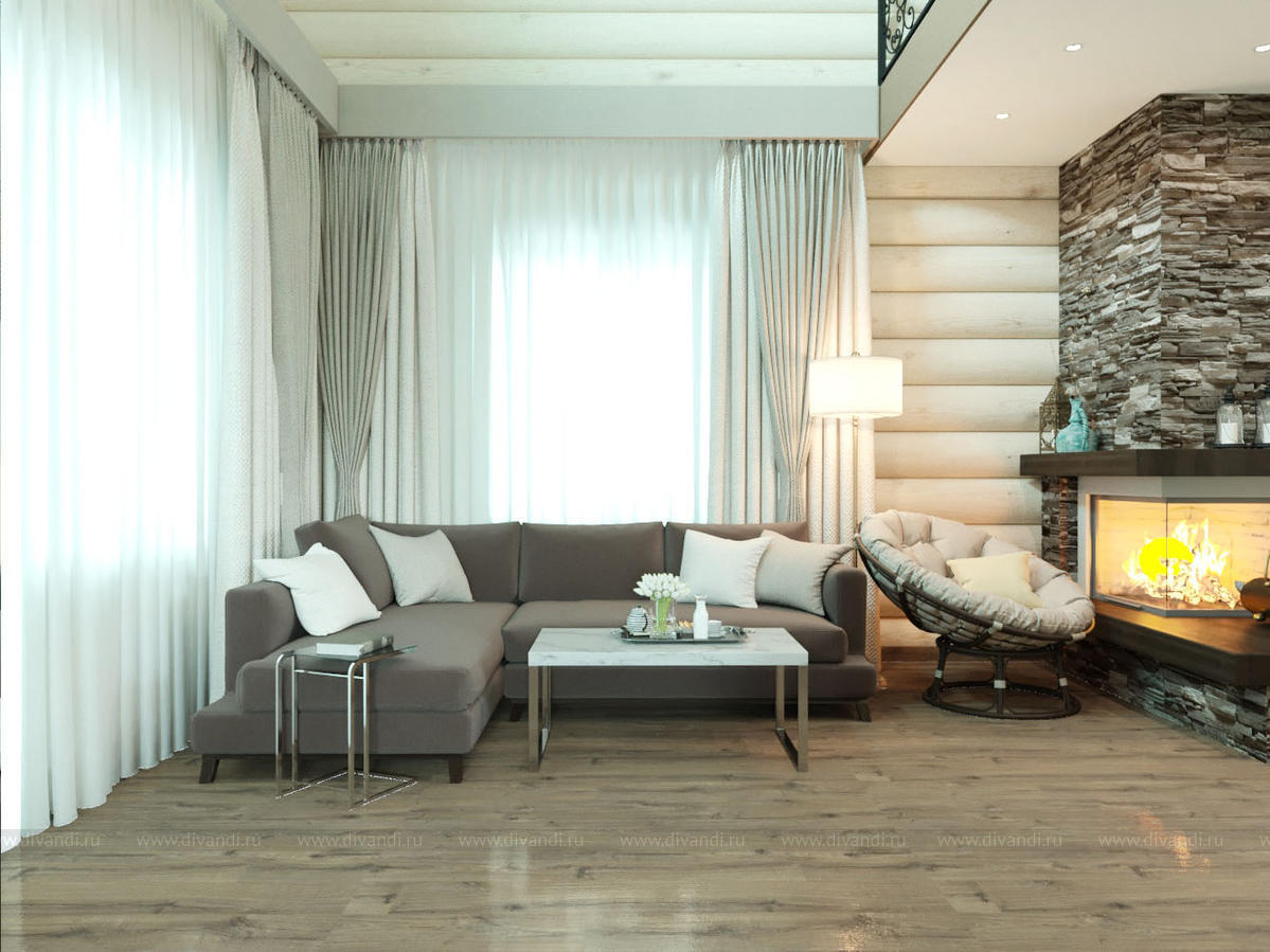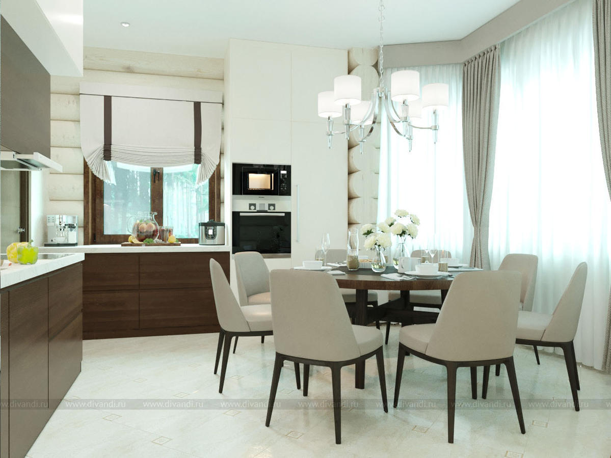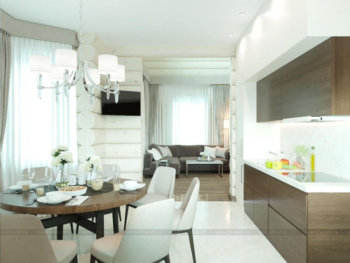 Коттедж из бруса в светлых оттенках. Весь коттедж выполнен в современном стиле с добавлением современной классики.