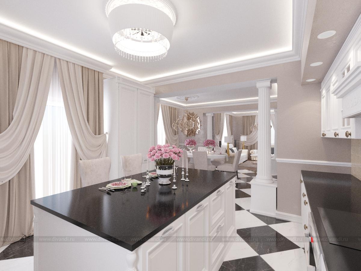 загородный дом, кухня, гостиная