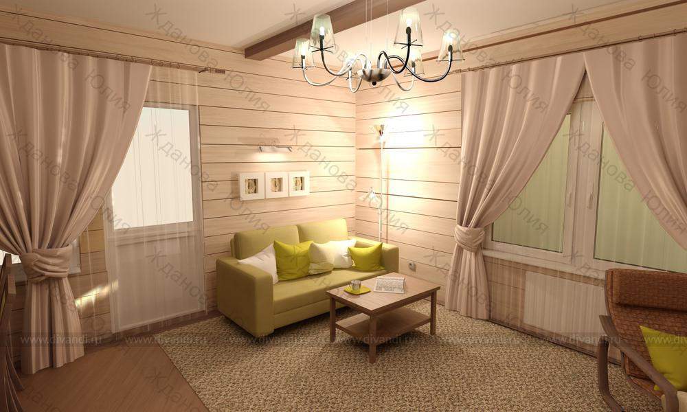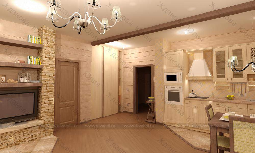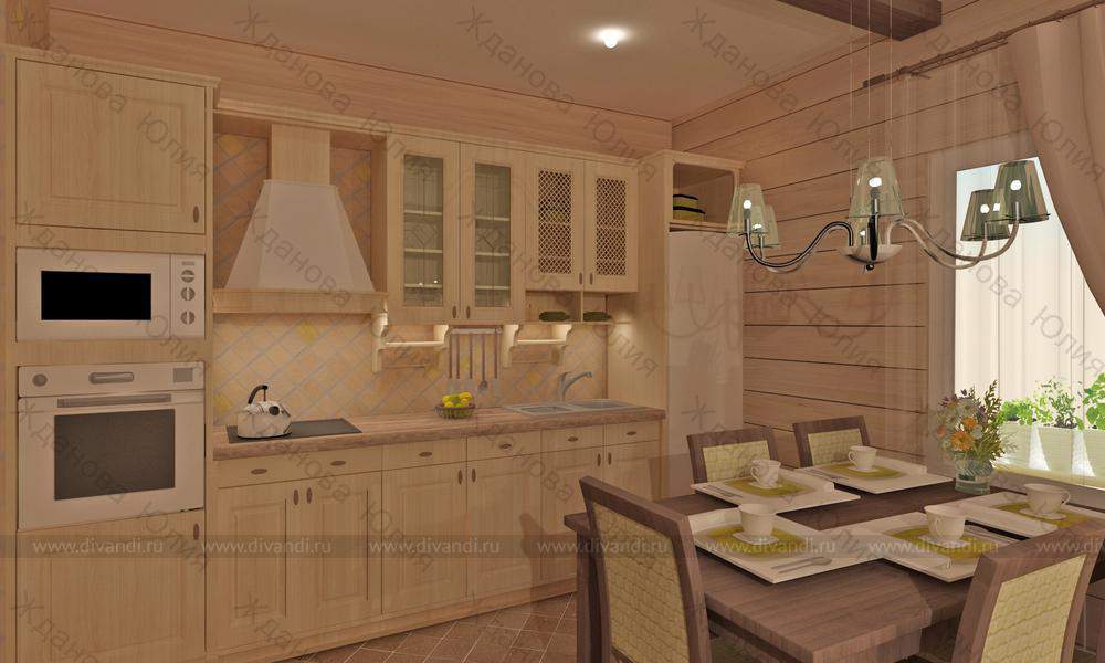 Объект: кухня-гостиная площадью 40 кв.м. в доме из бруса, общ. площадью 170 кв.м.