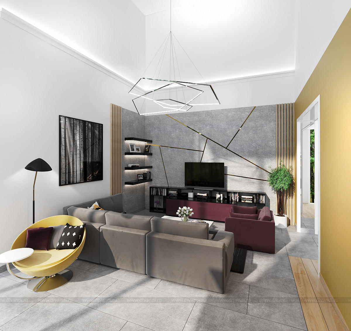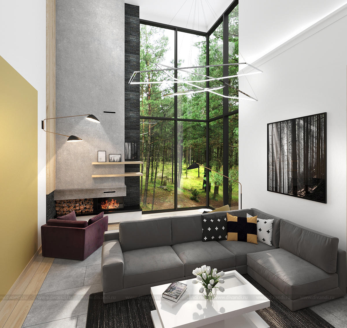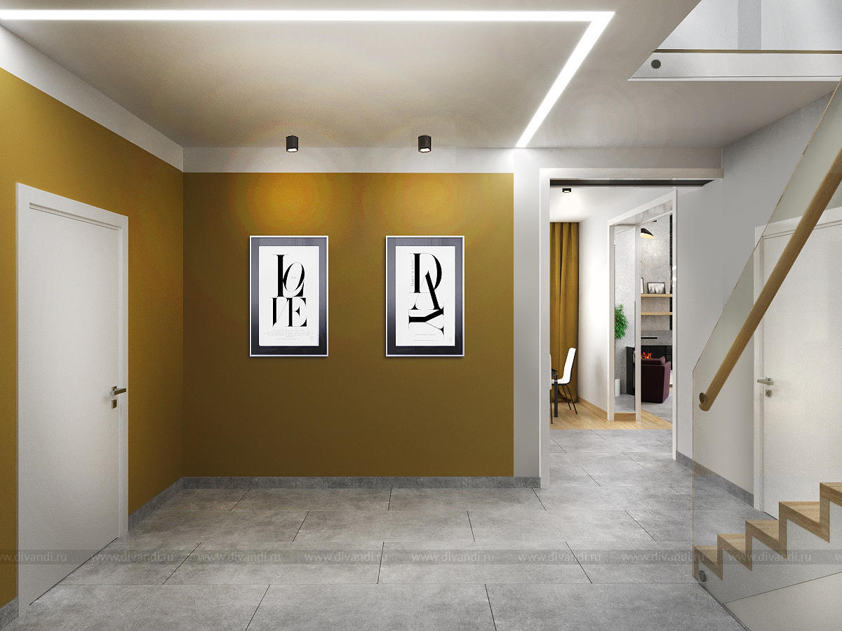 Небольшой коттедж в стиле минимализм.Очень простые и чистые пространства.Лаконичная мебель.Цветовая гамма - основа серый с элементами горчичного цвета.На полу плитка Estima,ванная комната - Италон.