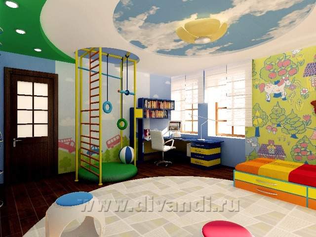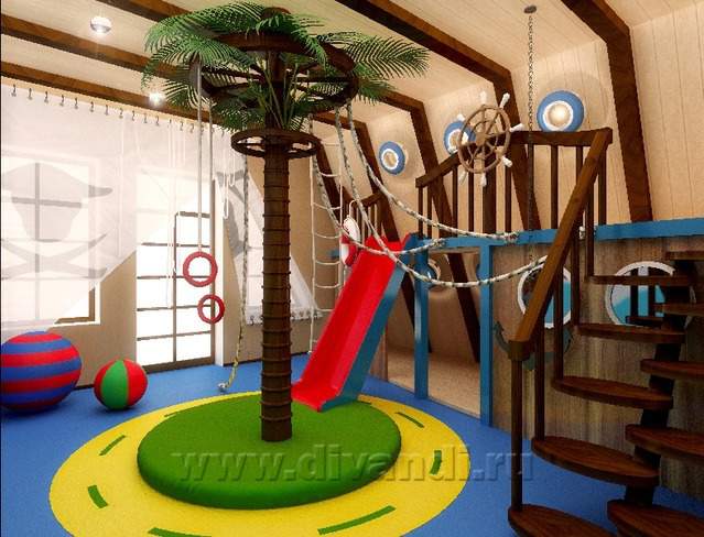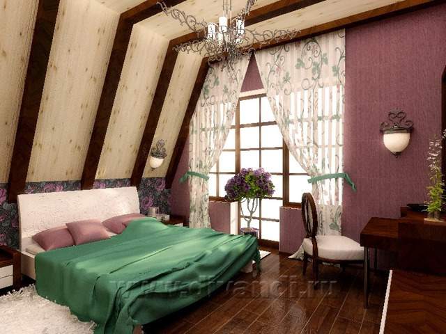 На втором- спальня и детская комнаты, на мансарде игровая и гостевая комнаты.