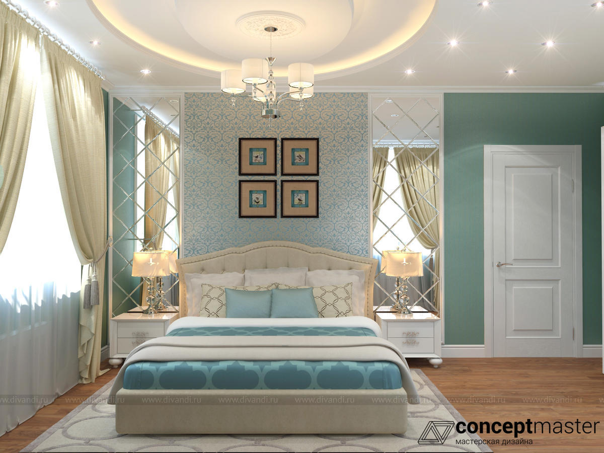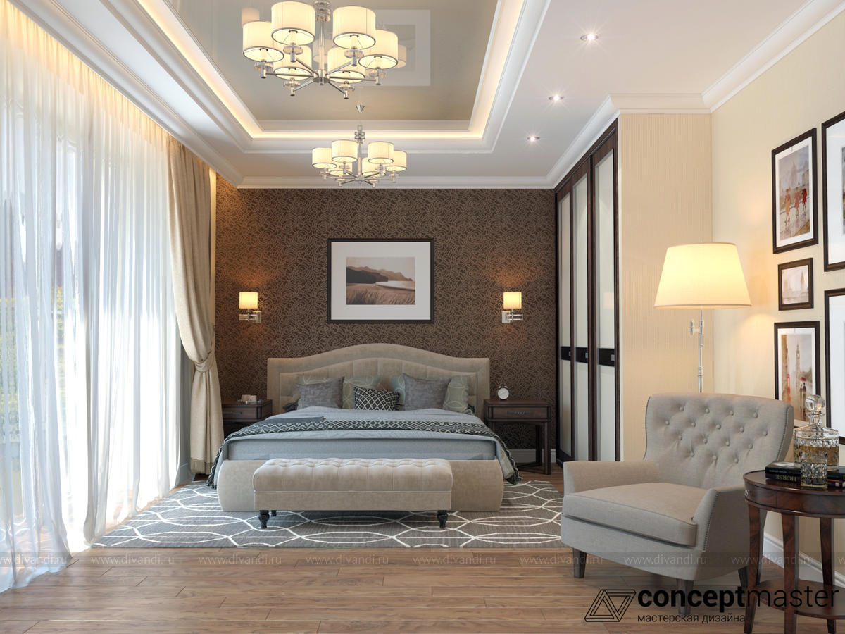 Тип проекта: загородный дом, спальня, кухня, ванная, гостиная