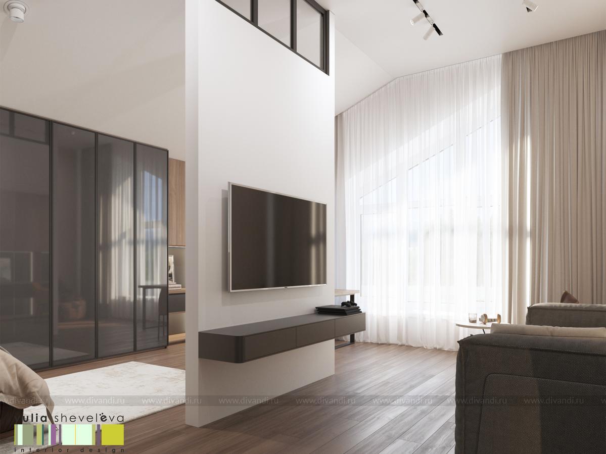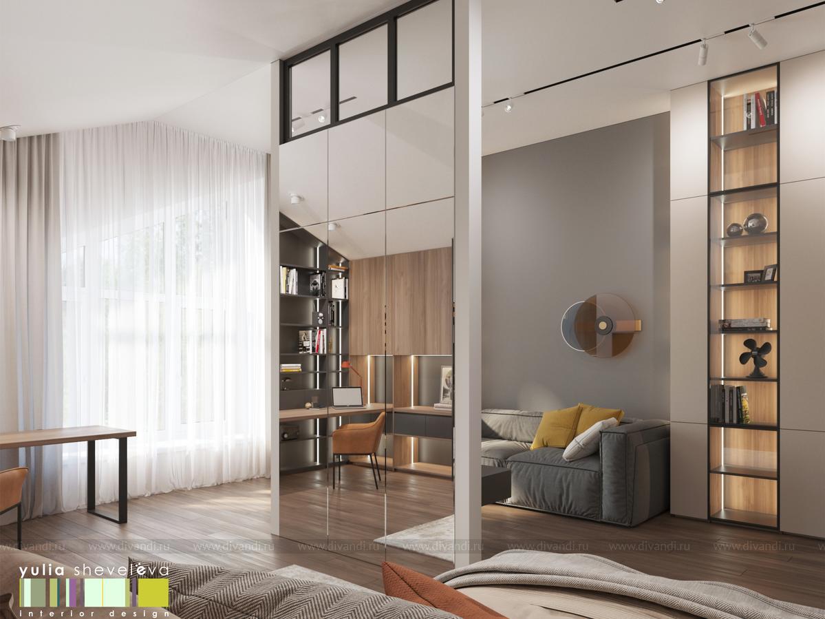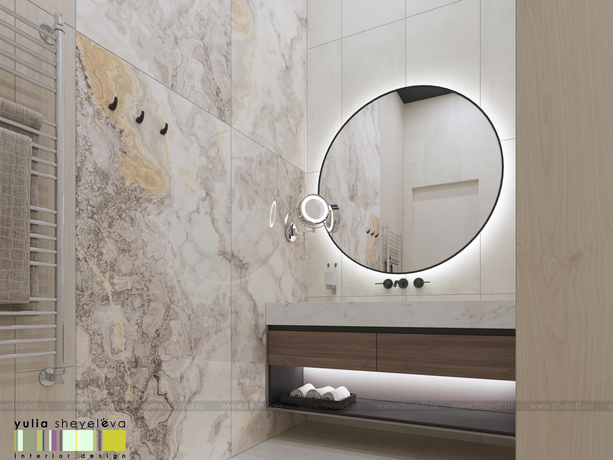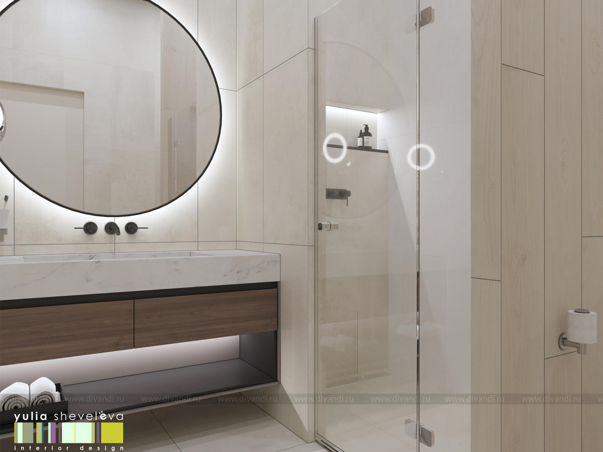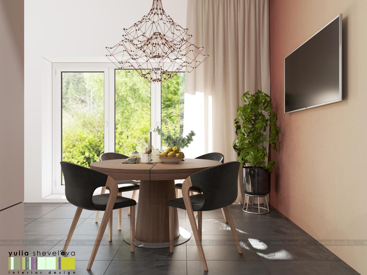 Спроектирован интерьер в современном направлении с элементами эко-стиля. Использование натуральных материалов в отделке, стильная мебель, обилие света и пространства – это обязательные составляющие идеального интерьера.
