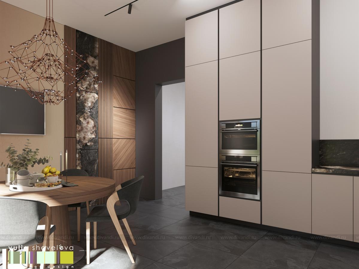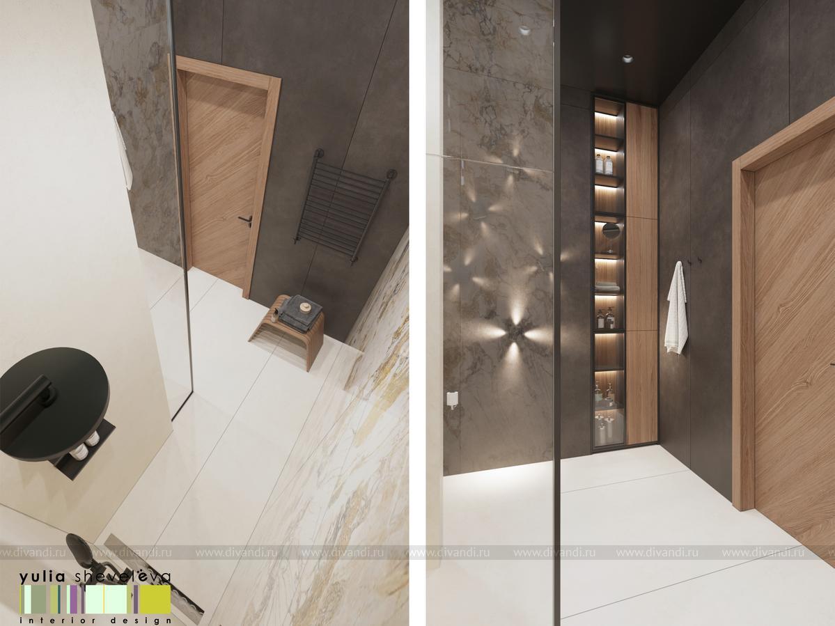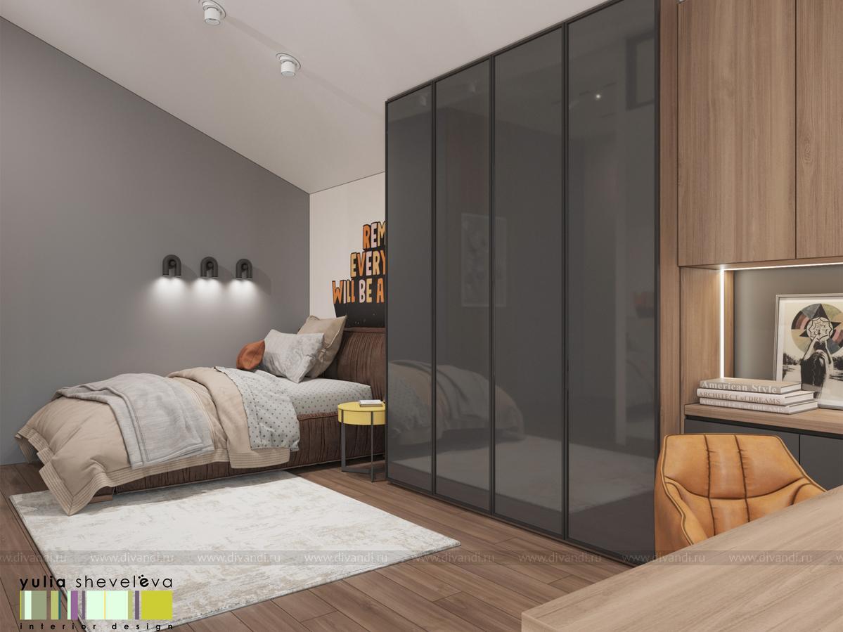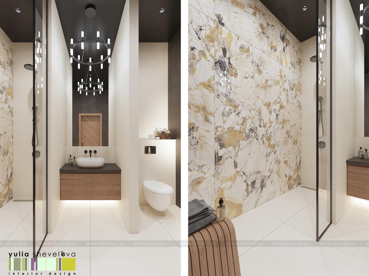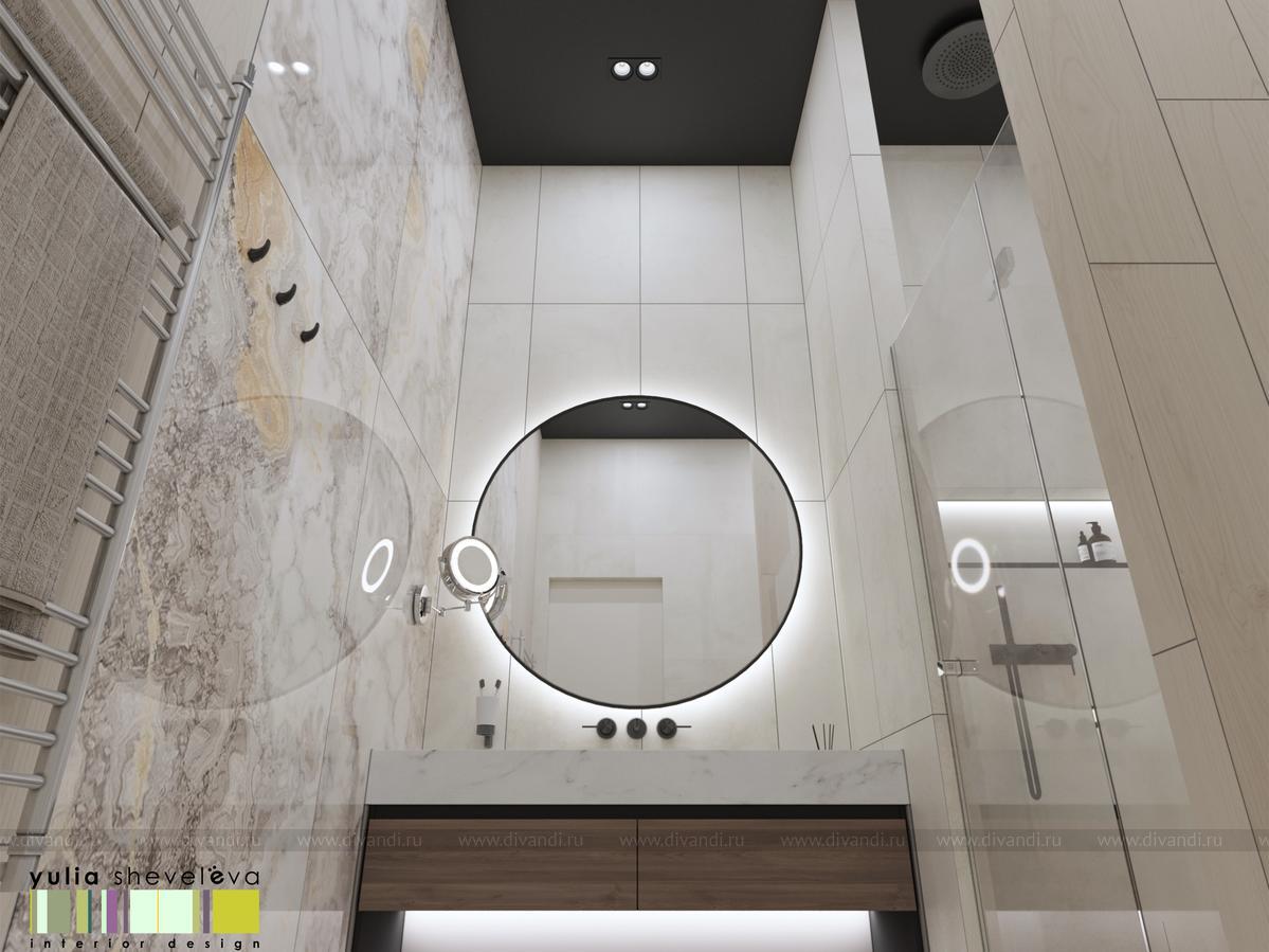 Спроектирован интерьер в современном направлении с элементами эко-стиля. Использование натуральных материалов в отделке, стильная мебель, обилие света и пространства – это обязательные составляющие идеального интерьера.