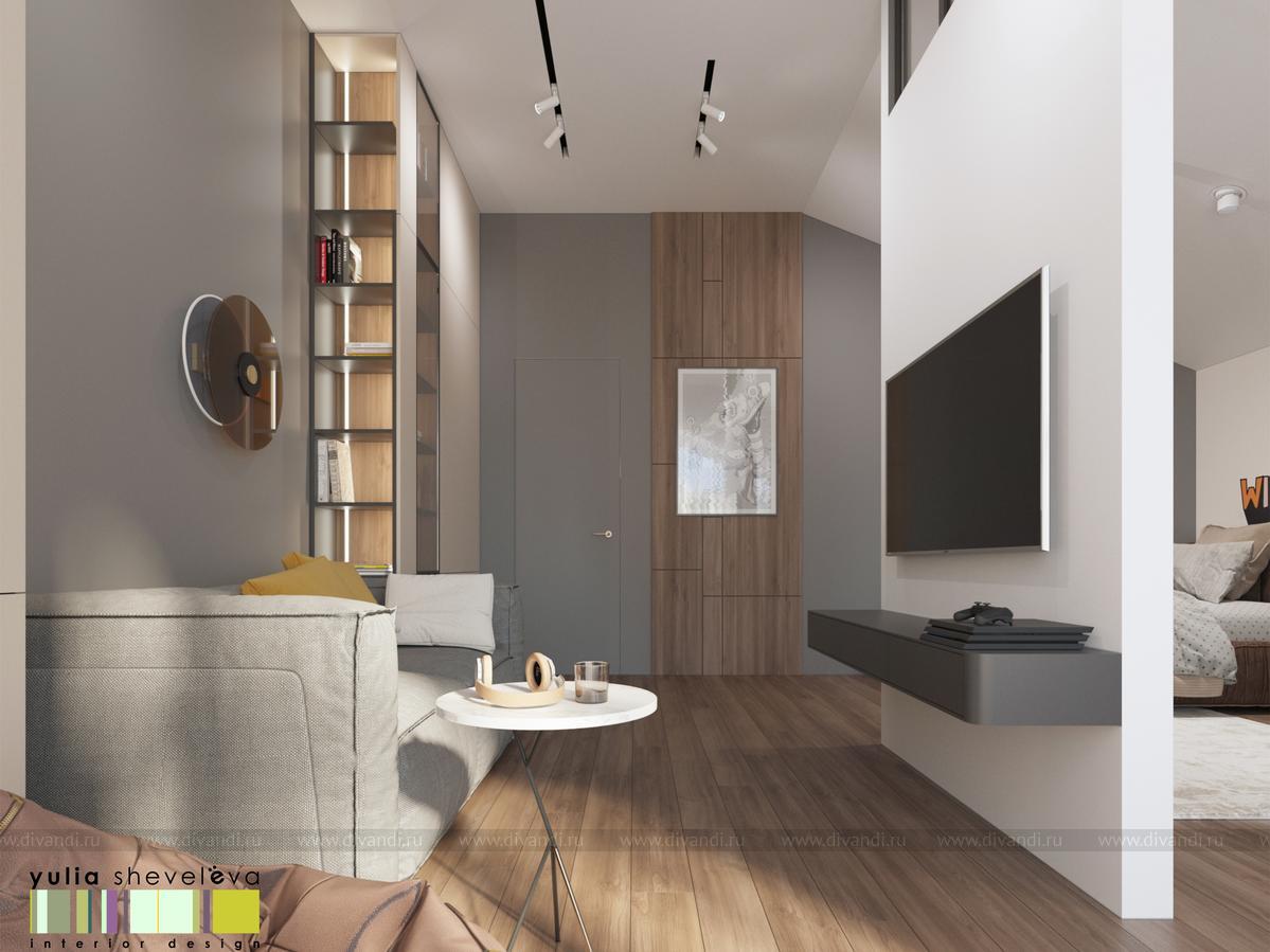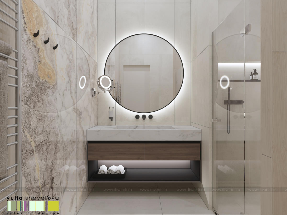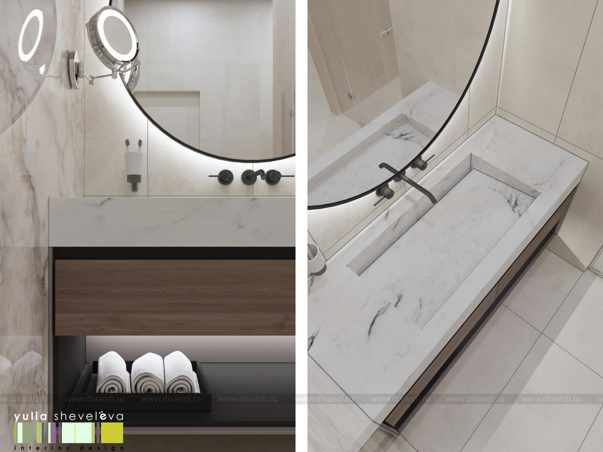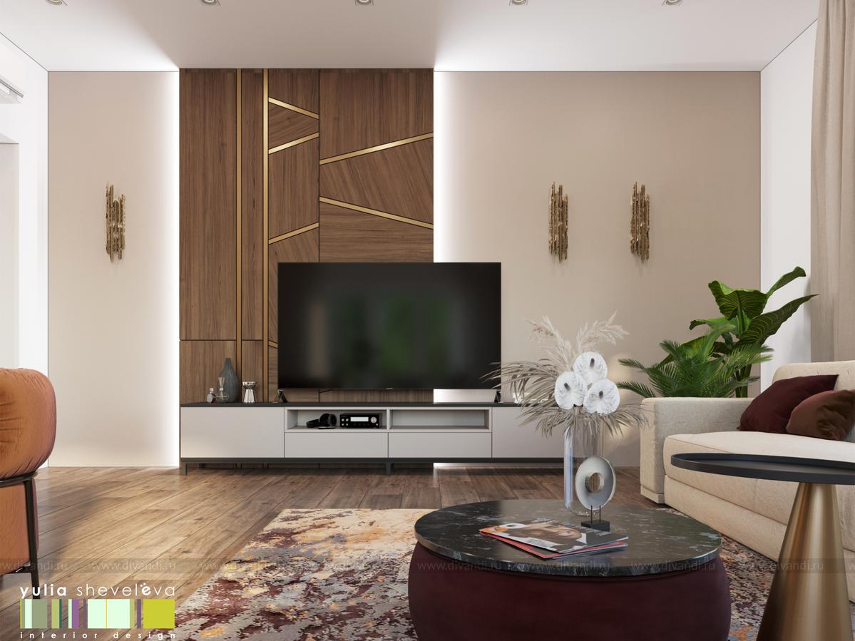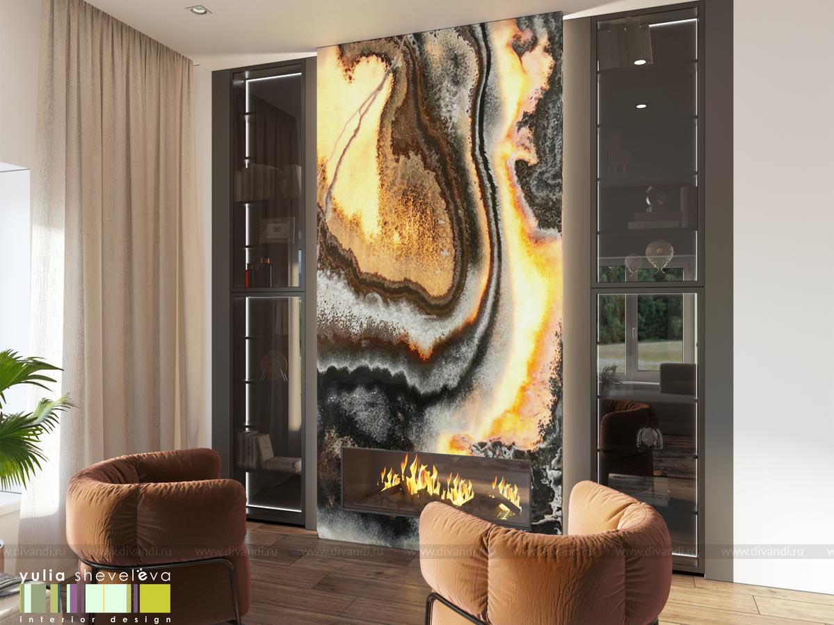Спроектирован интерьер в современном направлении с элементами эко-стиля. Использование натуральных материалов в отделке, стильная мебель, обилие света и пространства – это обязательные составляющие идеального интерьера.