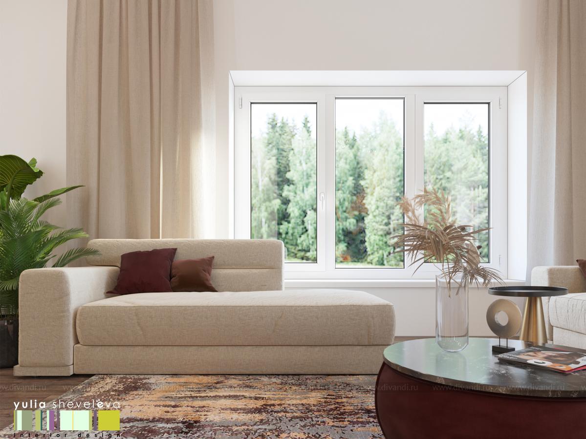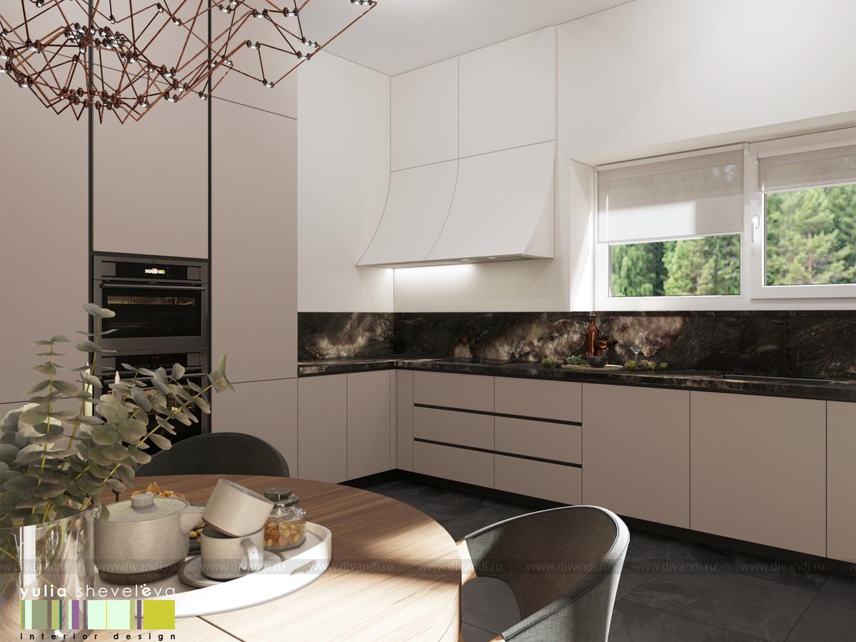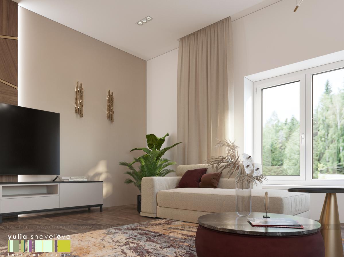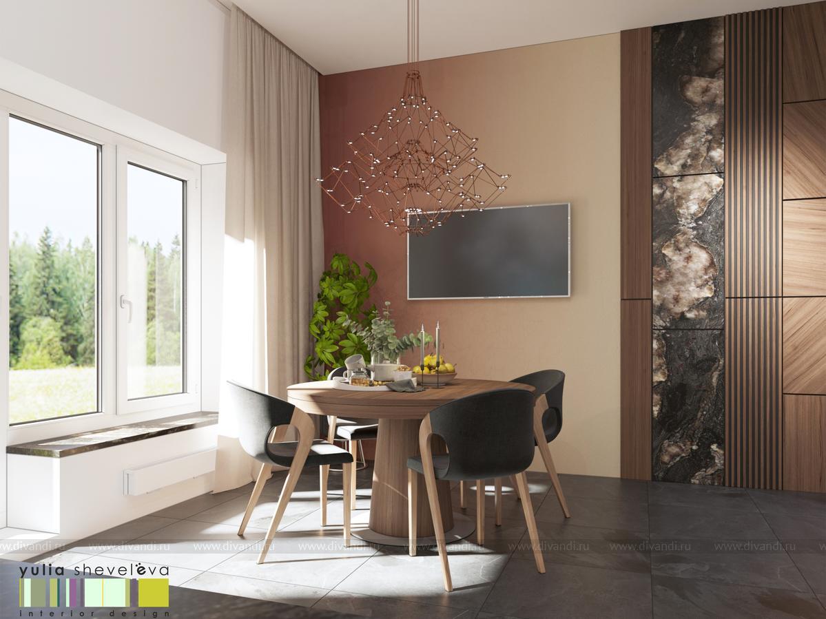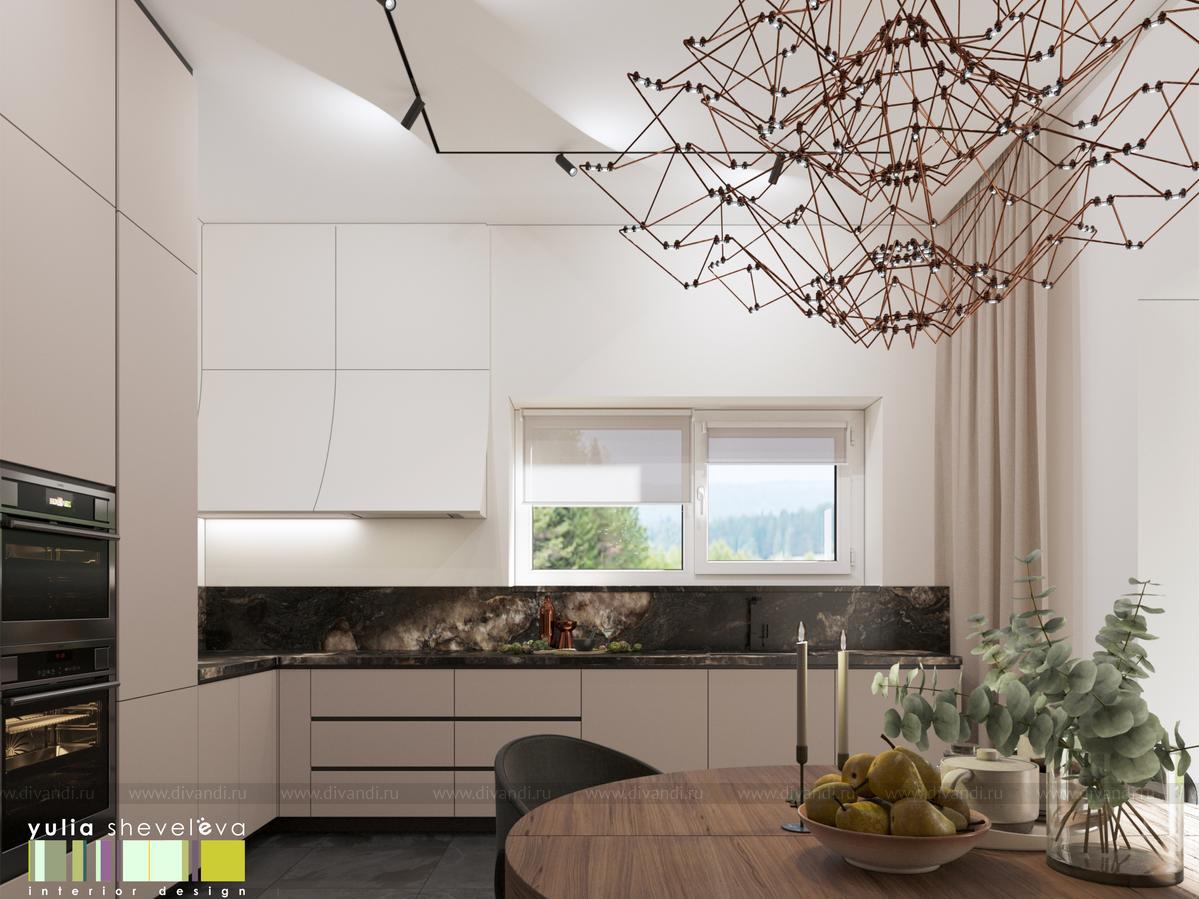 Дизайн интерьера загородного дома, общей площадью 320 м², выполнен в рамках проектирования загородного дома в КП Брусника.