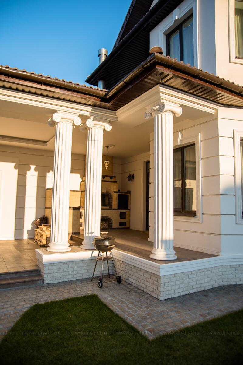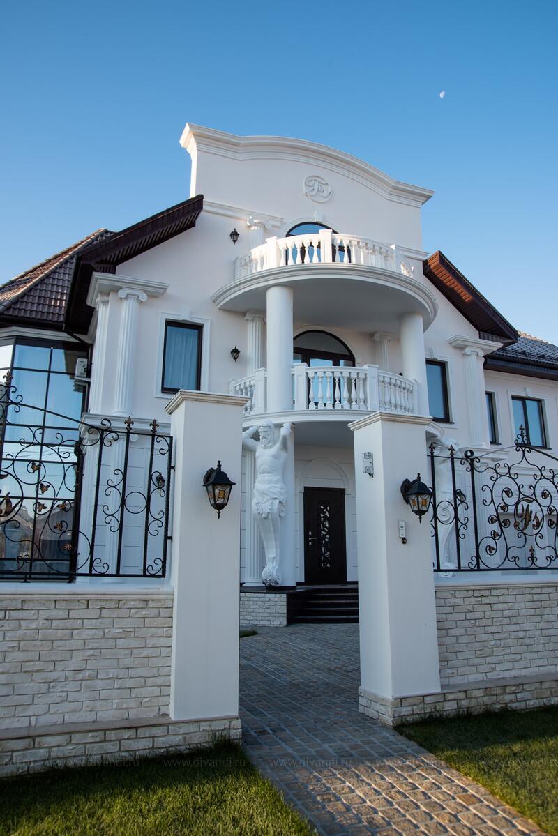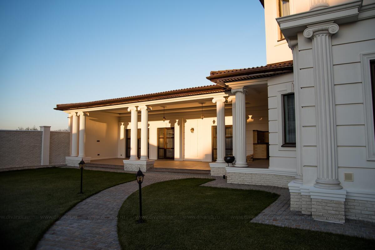 В доме, выдержанном в стиле «облегченной классики», между элементами внешнего декора остаются только рустованные углы здания. В свою очередь, несложно преобразить простую «коробку» в благородный дом при помощи декоративных элементов