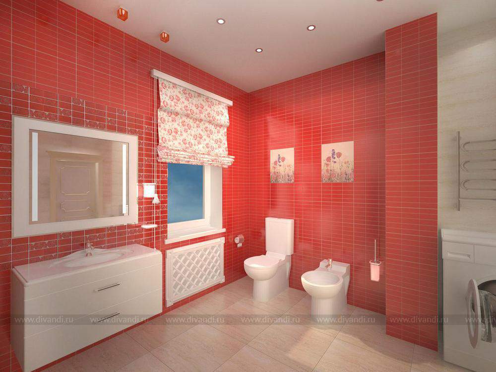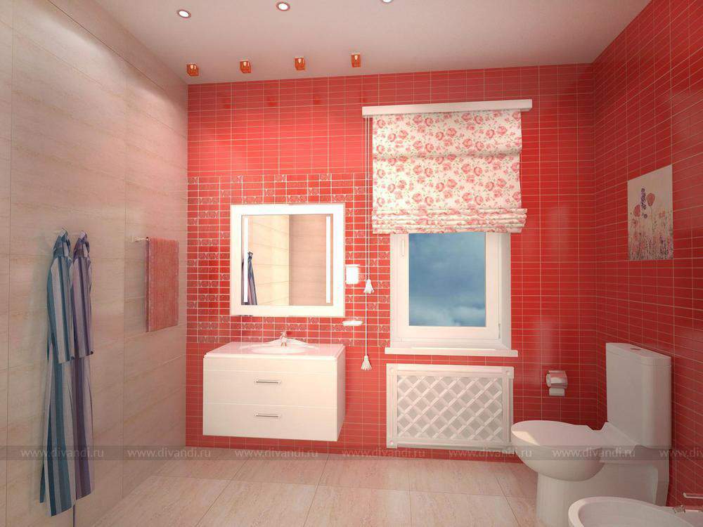 Красная ванна. Бежевая плитка - Kerama Marazzi Клермон 25х75, Красная - Pamesa Коллекция: Vetro-Vetro Relieve