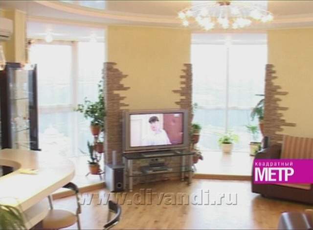Планировка трехкомнатной квартиры в новостройке изначально была нестандартной. Настроение дизайн-проекту задавал огромный балкон полукруглой формы, из которого открывался чудесный вид на Верх-Исетский пруд. Решено было еще на стадии черновой отделки присоединить к гостиной, сделать его частью. Для этого строители провели работы по утеплению стен и пола. Так площадь необычной гостиной стала еще больше, а на балконе в нише были сделаны кабинет для главы семьи и зона релакса, где поместился «зимний сад». Кухня была также присоединена к гостиной, и стала ее неотъемлемой частью. Спальня еще в проекте квартиры была неправильной пятиугольной формы. Исправить пропорции решено было с помощью углового шкафа-купе и оригинальным расположением кровати. Детская за счет перепланировки кухни превратилась в длинное, узкое помещение с нишами. Однако в процессе грамотного зонирования в детской появилась рабочая зона, спальное место, и гардероб.