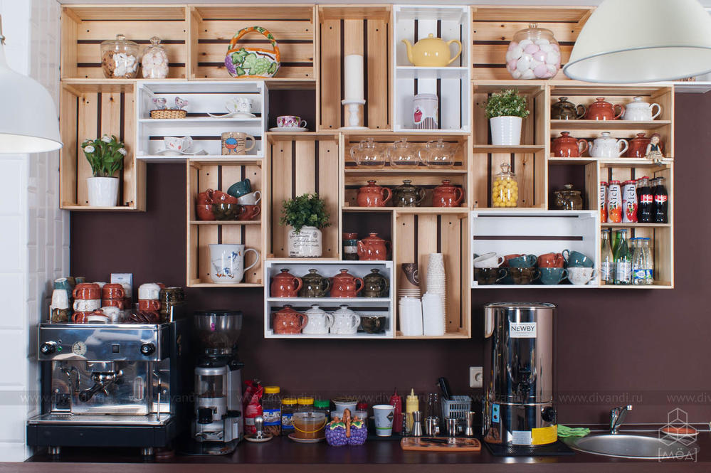 Реализованный проект кафе в бизнес-центре "Саммит". Цель была с помощью декора обновить дизайн помещения, не затрагивая основных конструктивных элементов. Заказчики хотели с помощью минимальных временных и финансовых затрат получить абсолютно новый интерьер.