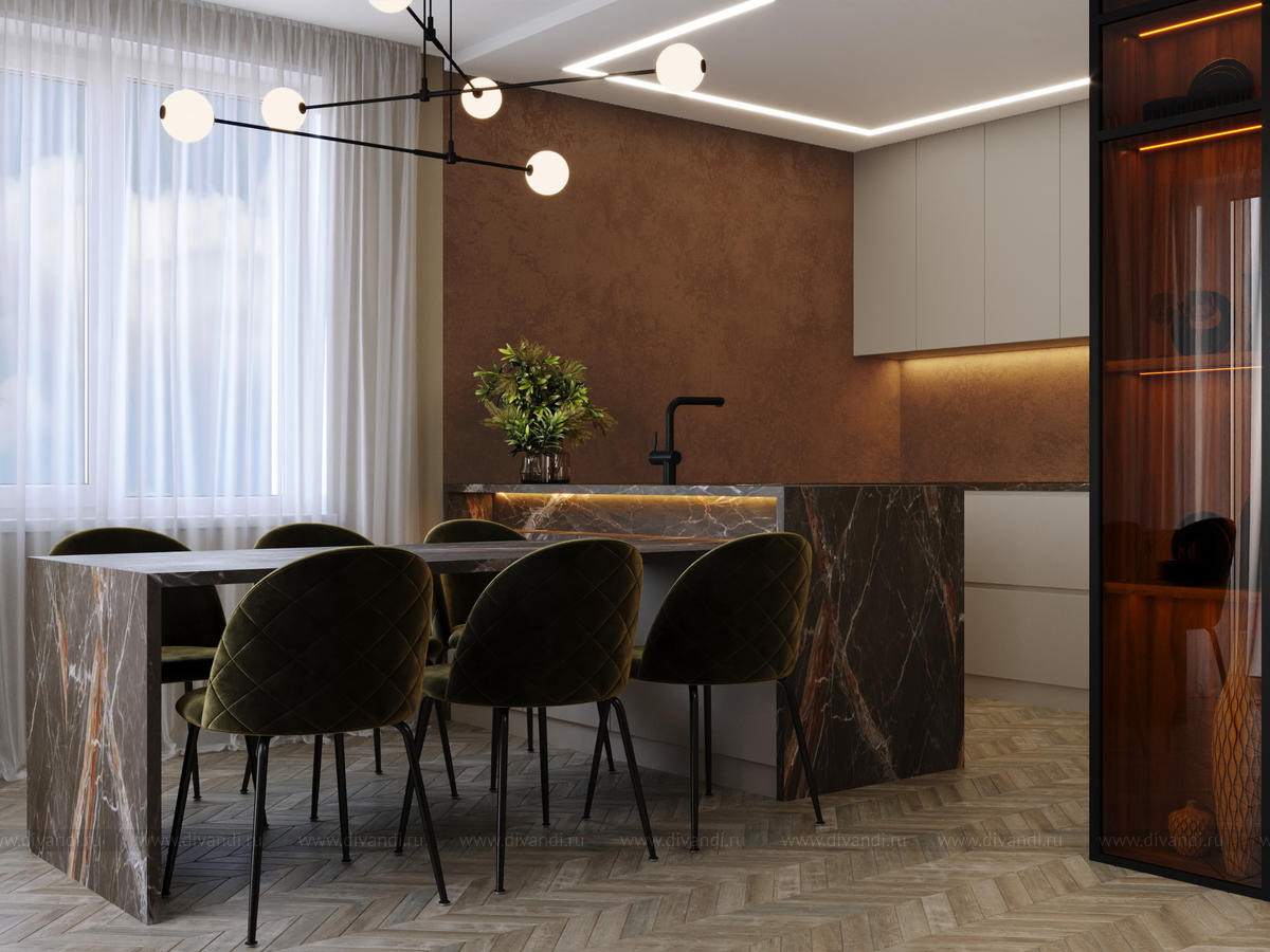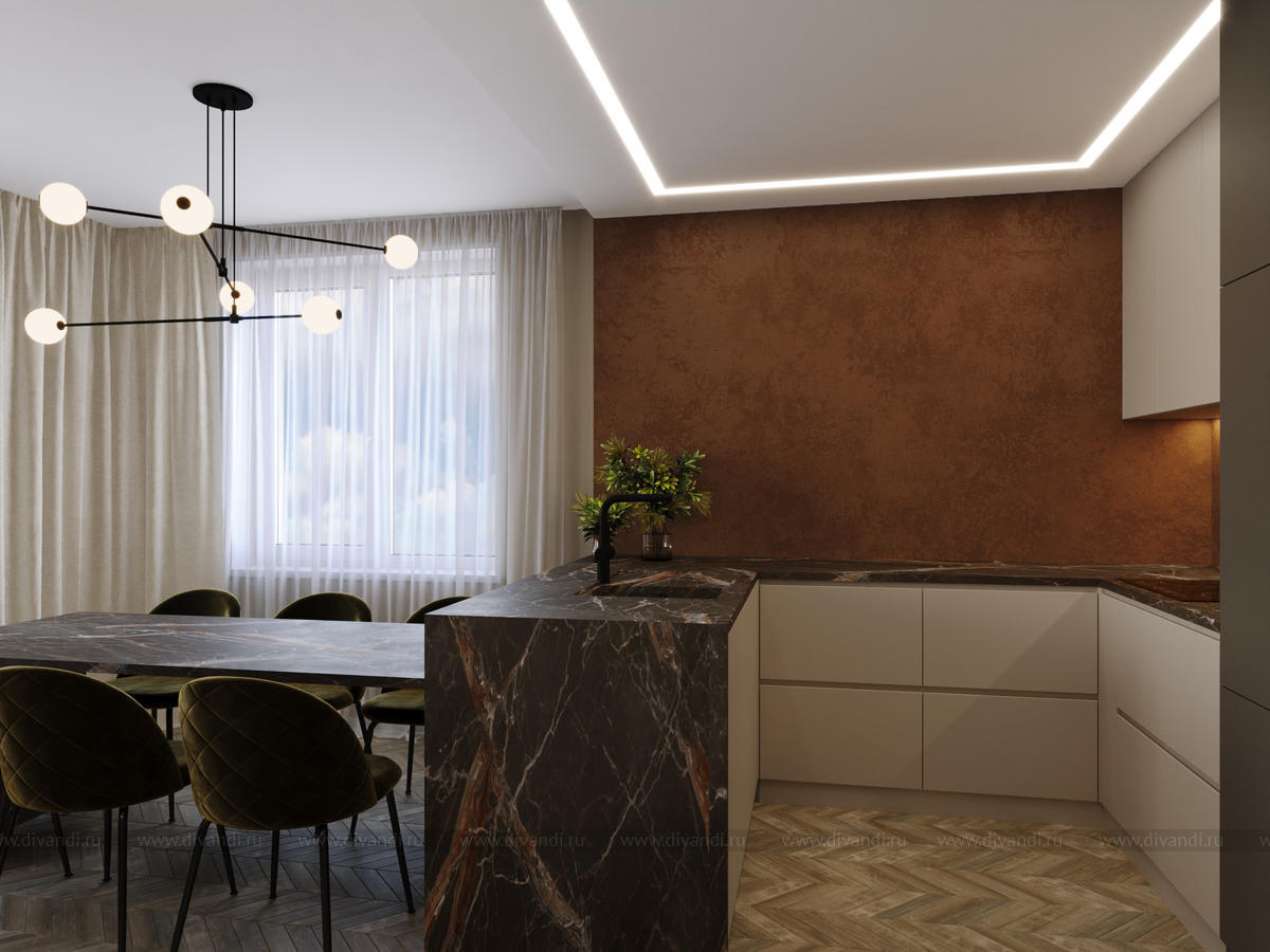 Уютная кухня-гостиная в любимом доме