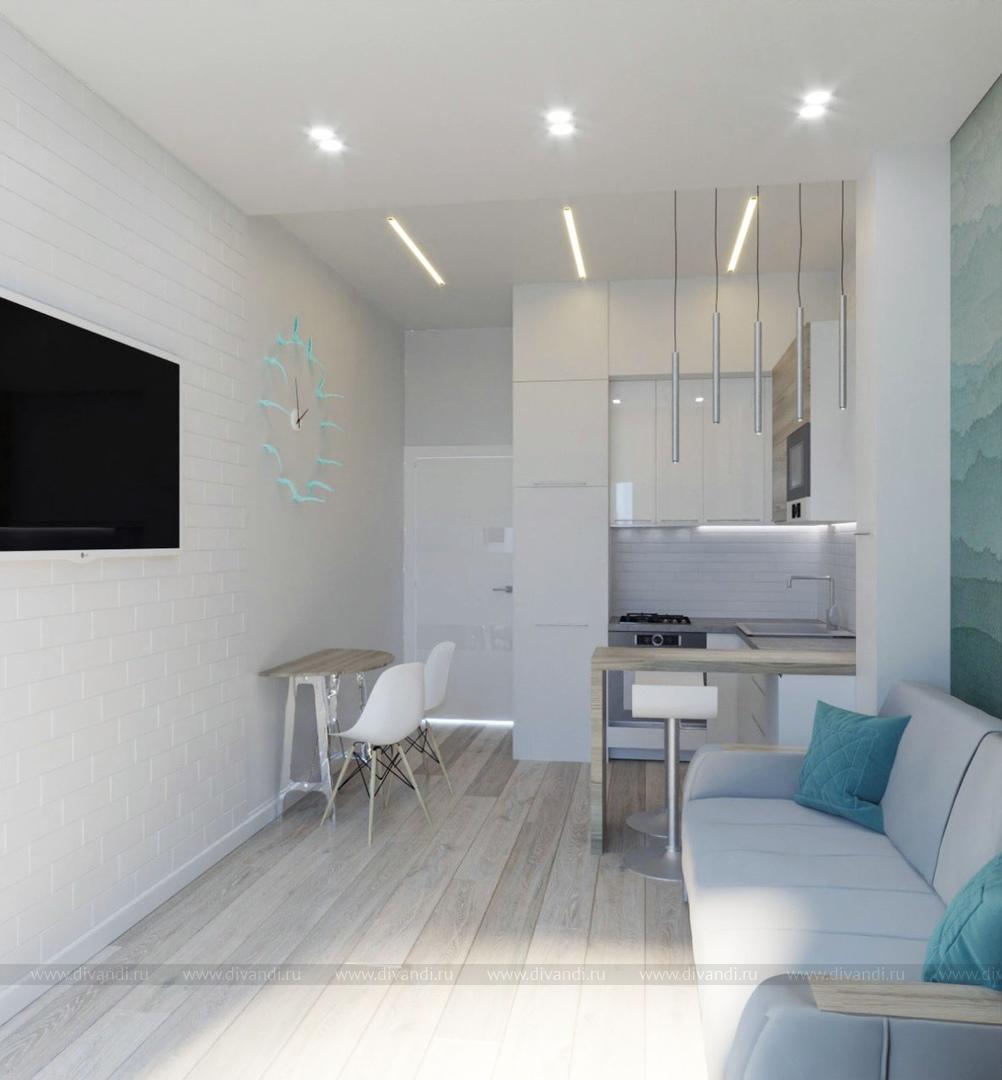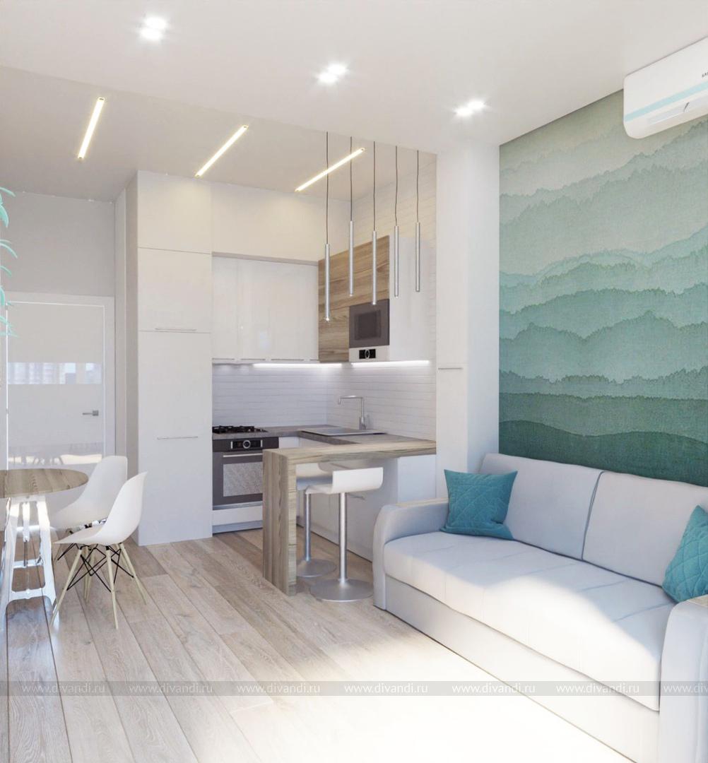 Светлое радостное настроение переезжающих с Урала на море передалось (на мой взгляд) в этой небольшой комнате: здесь и воздух, и много света, и горы, и бирюза с моря))