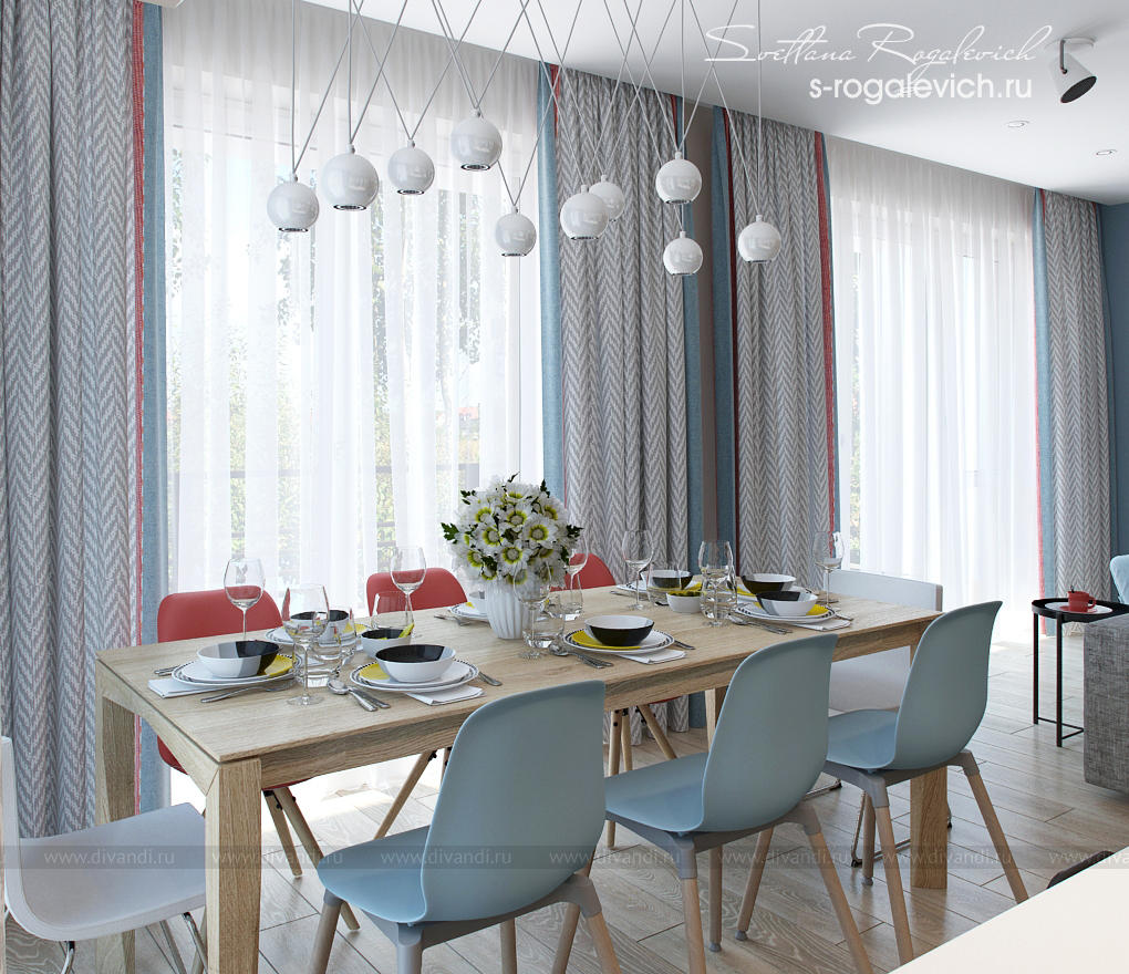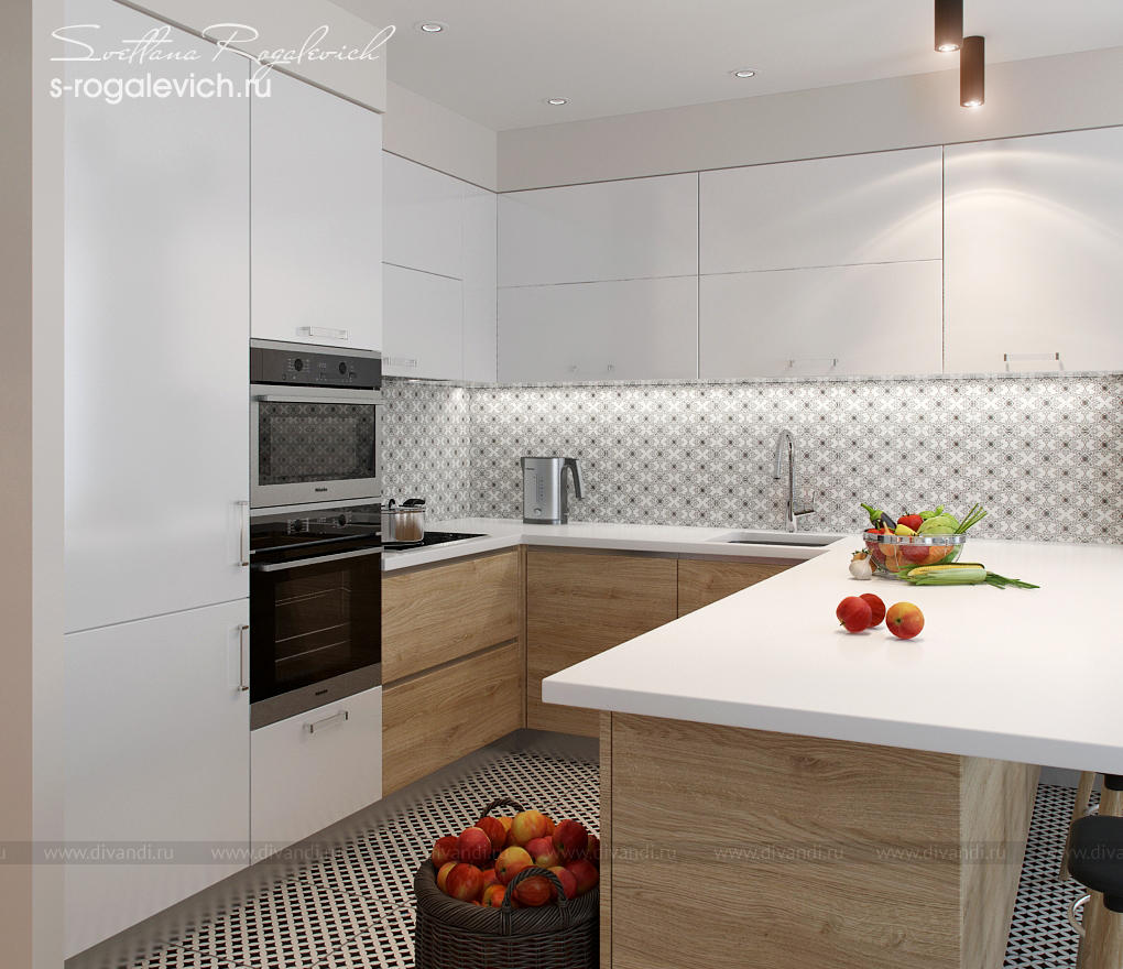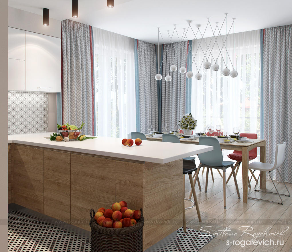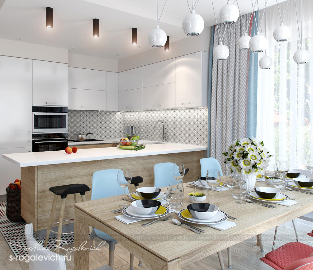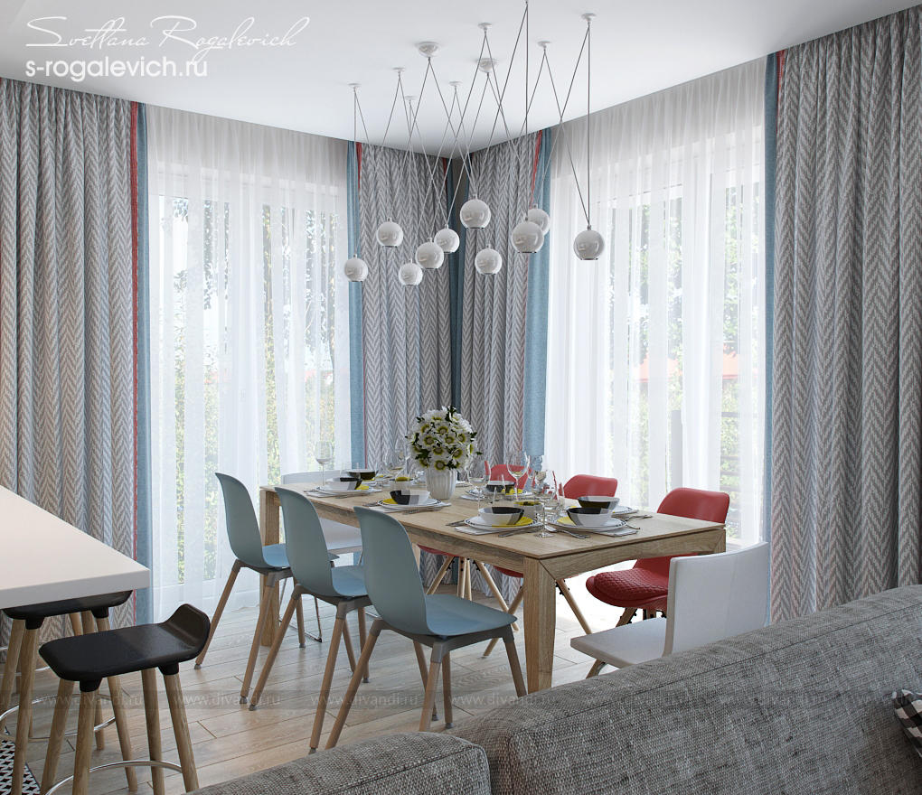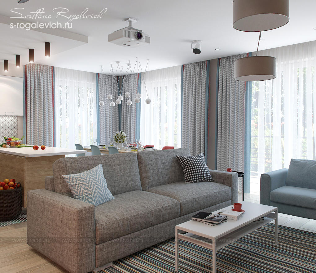 Современный дизайн с элементами скандинавского стиля. Площадь помещения 39 м2.