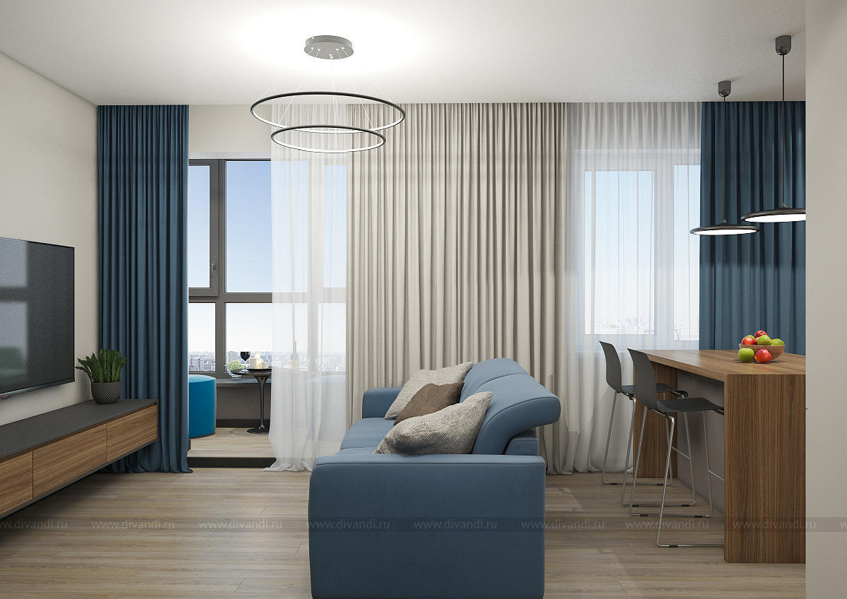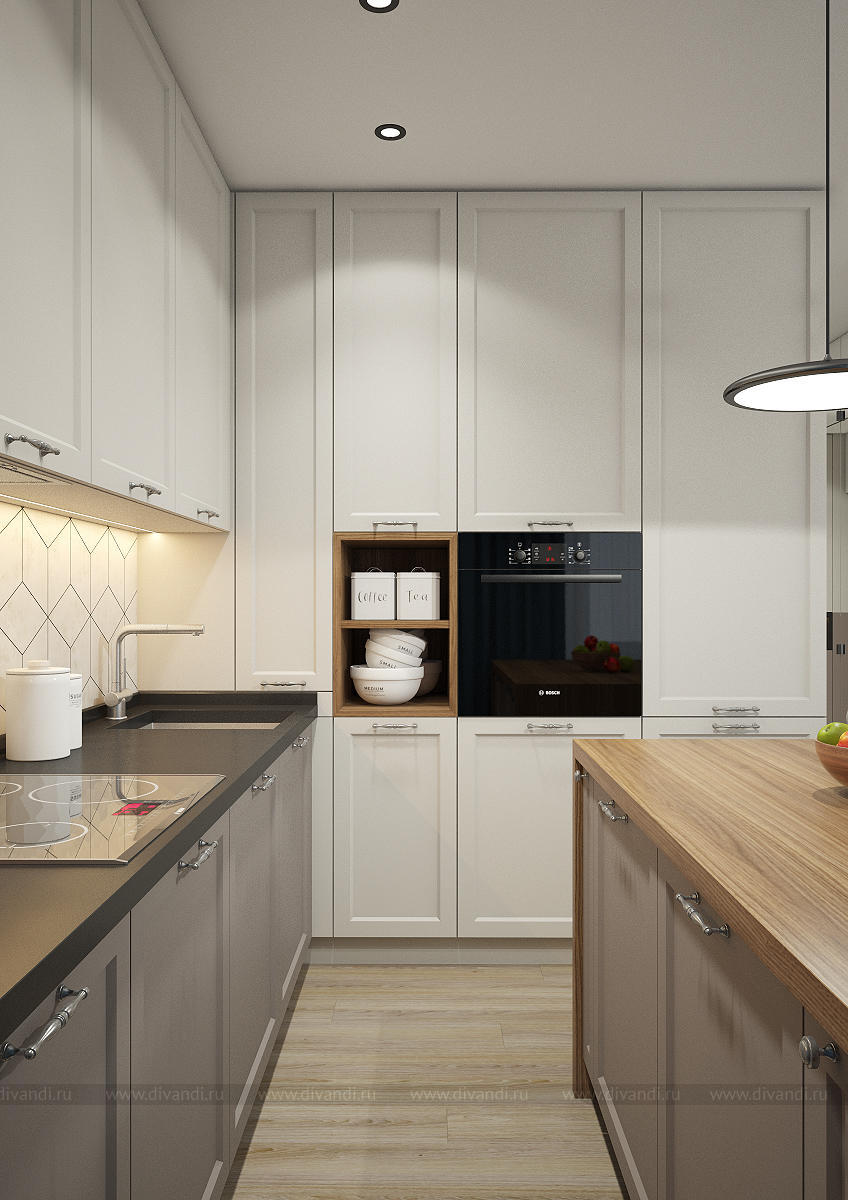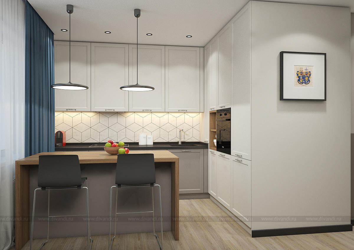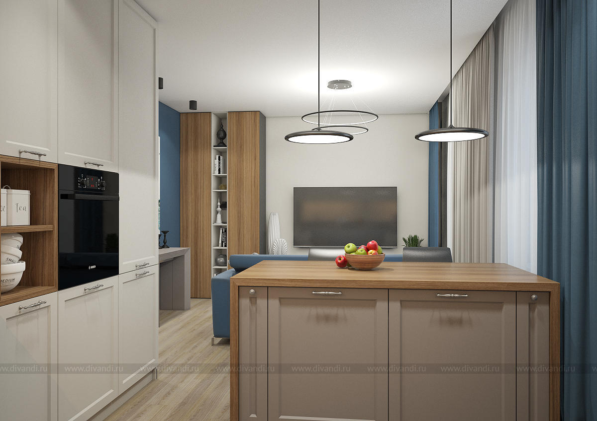 Кухня-гостиная в ЖК Арбатский в квартире 87 м2.