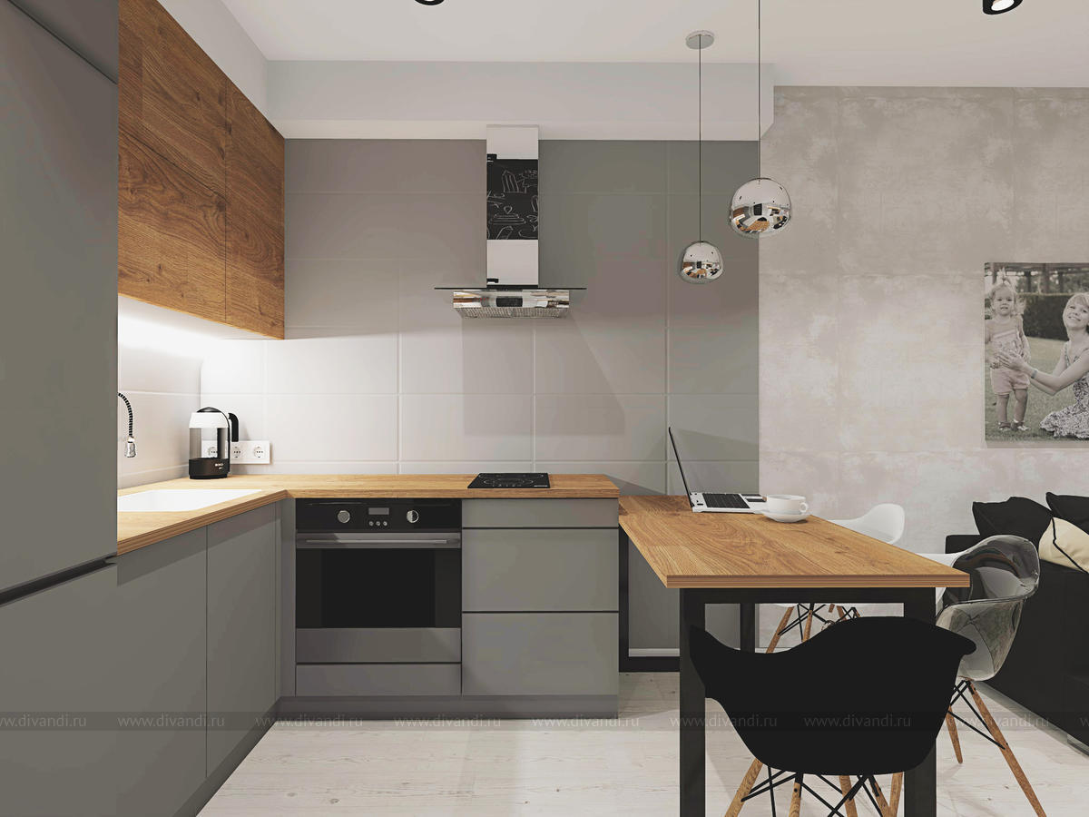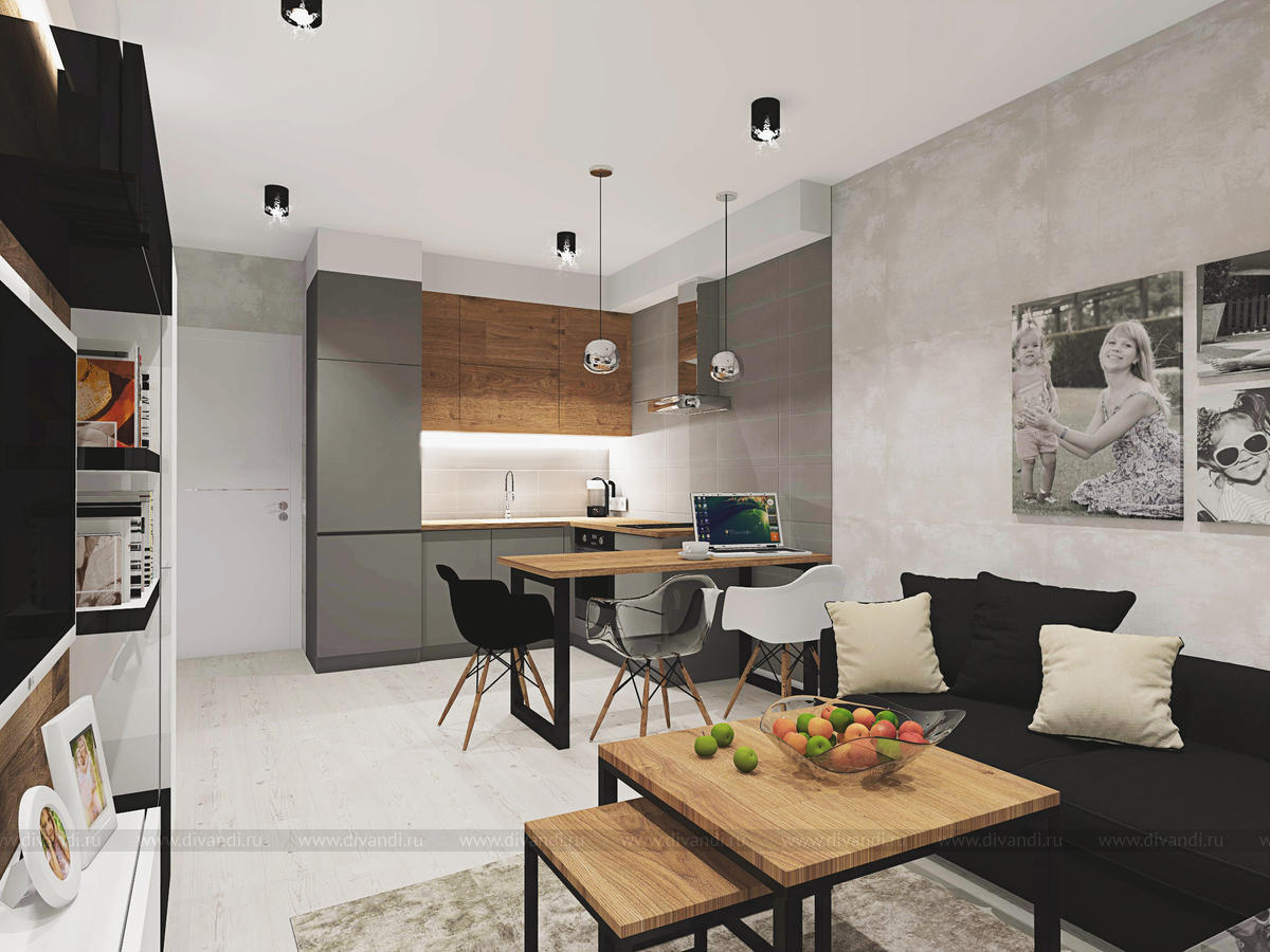 Гостиная-кухня в двухкомнатной студии