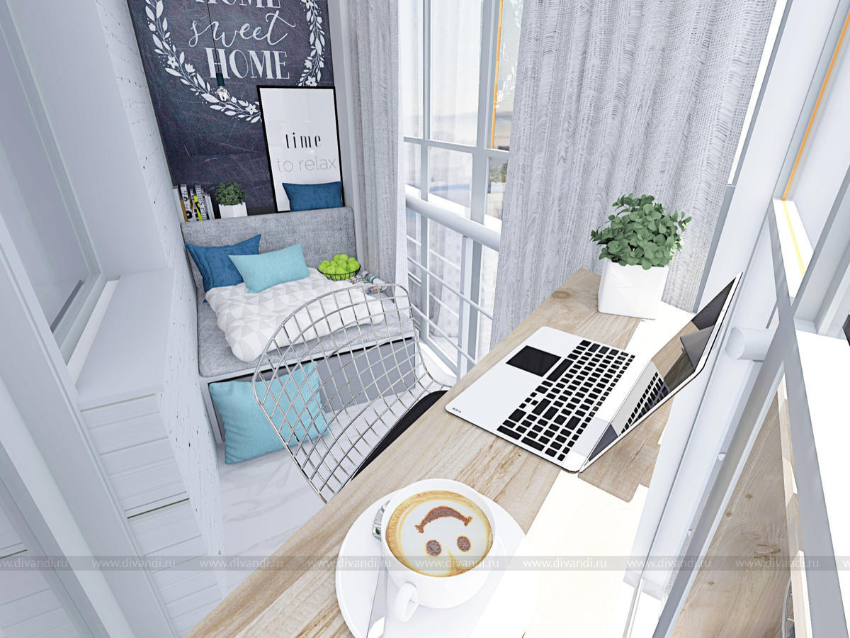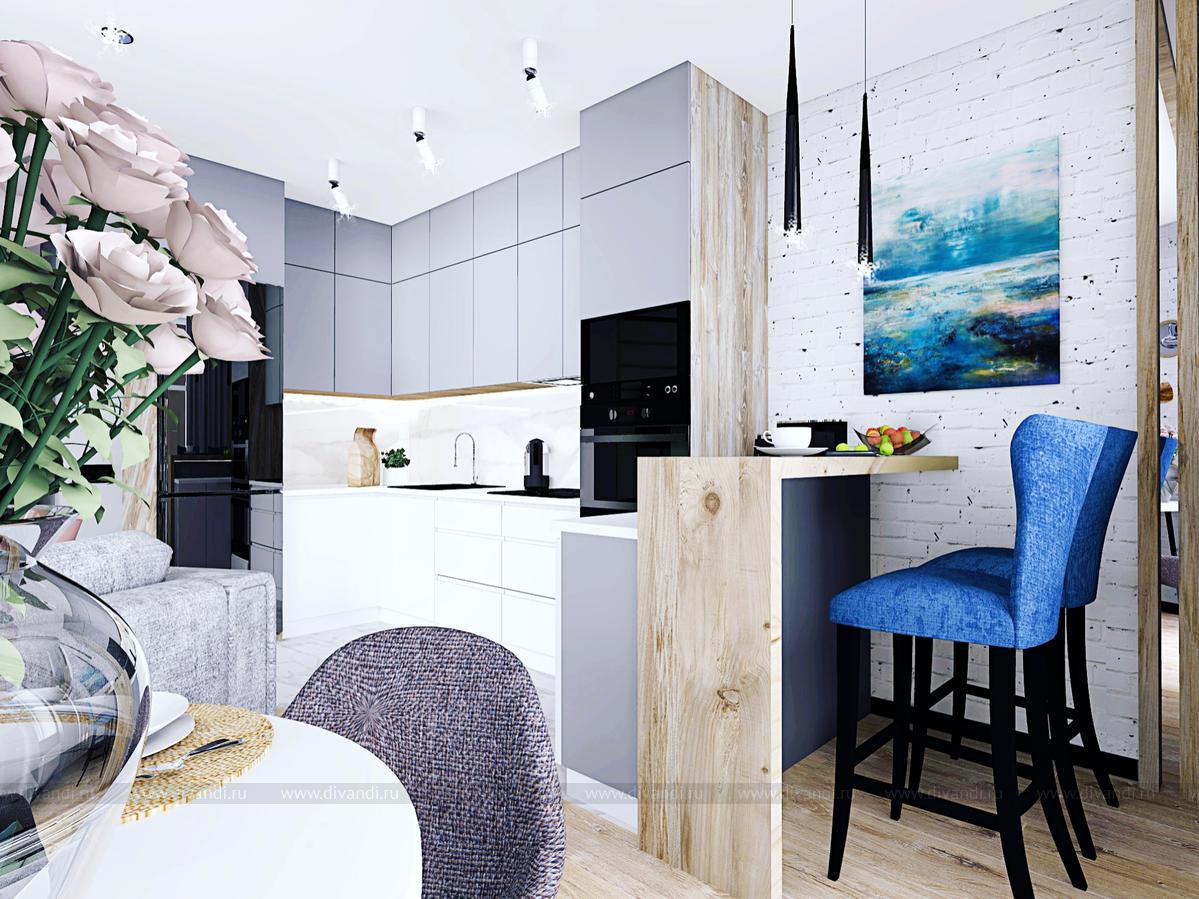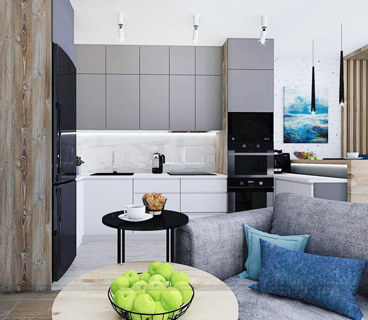 Кухня-гостиная-прихожая-лоджия в двухкомнатной квартире-студии