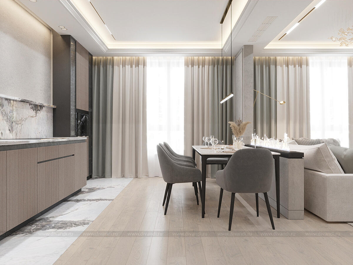 Уютная кухня-гостиная в любимом доме