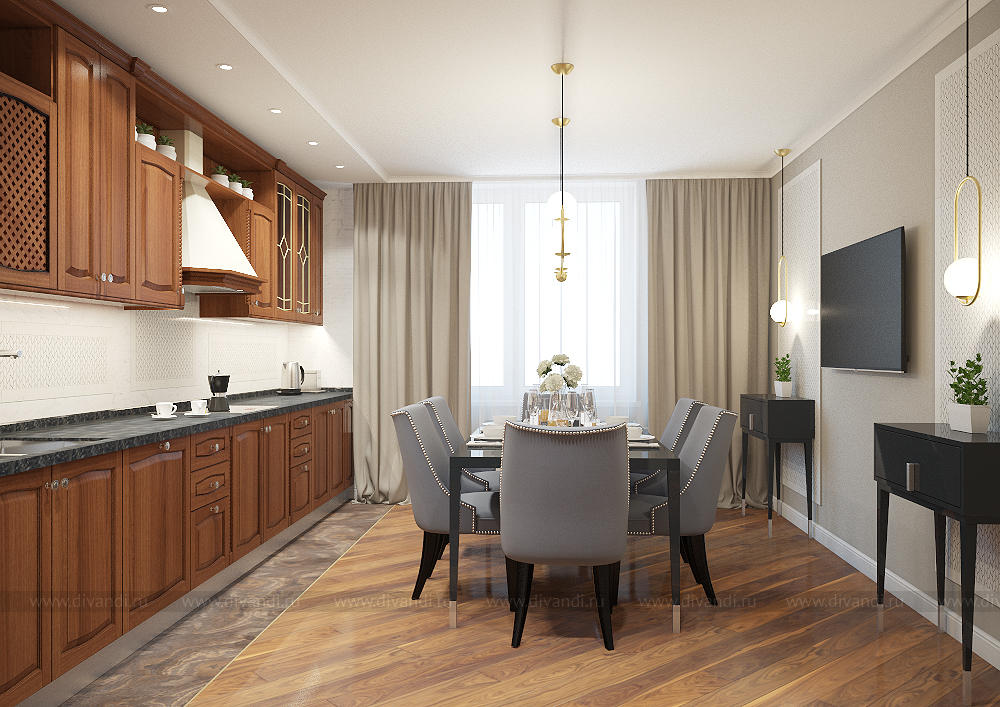 Уютная кухня-гостиная в любимом доме