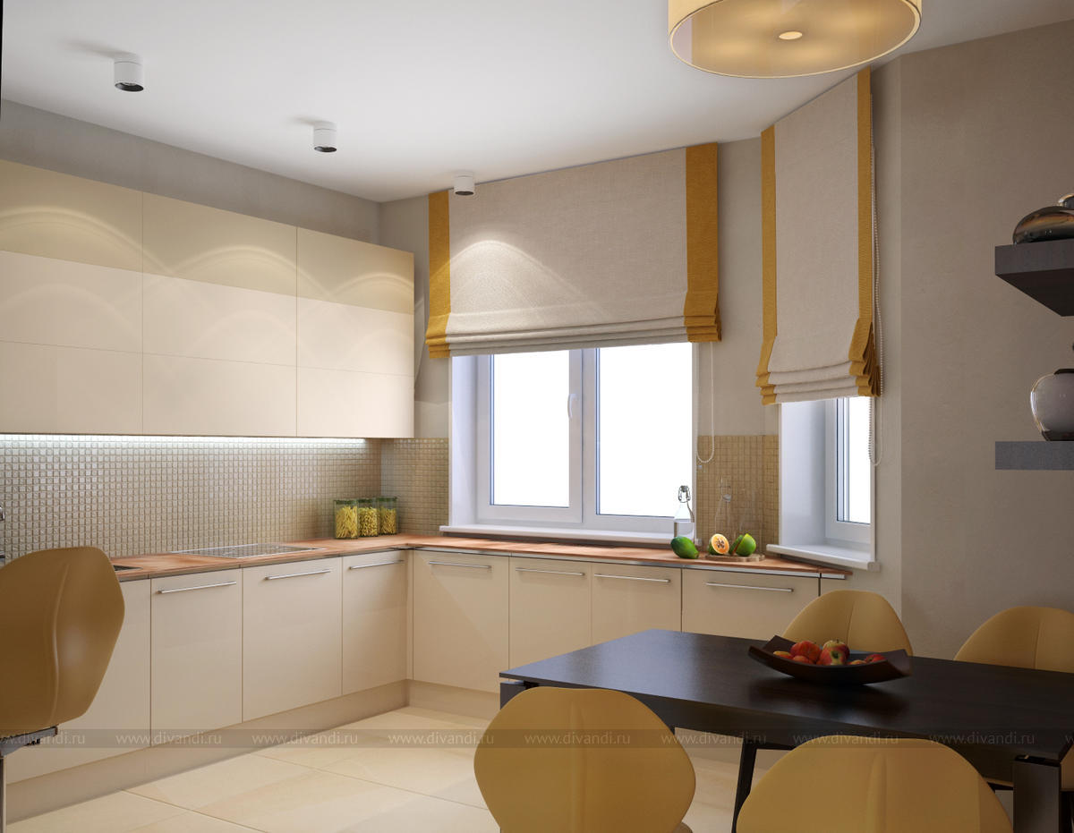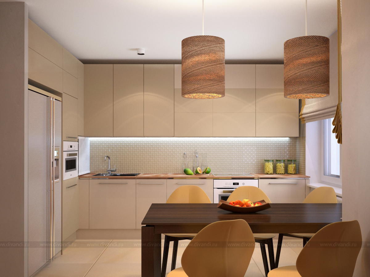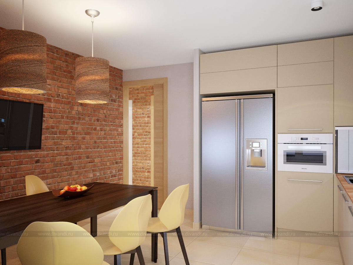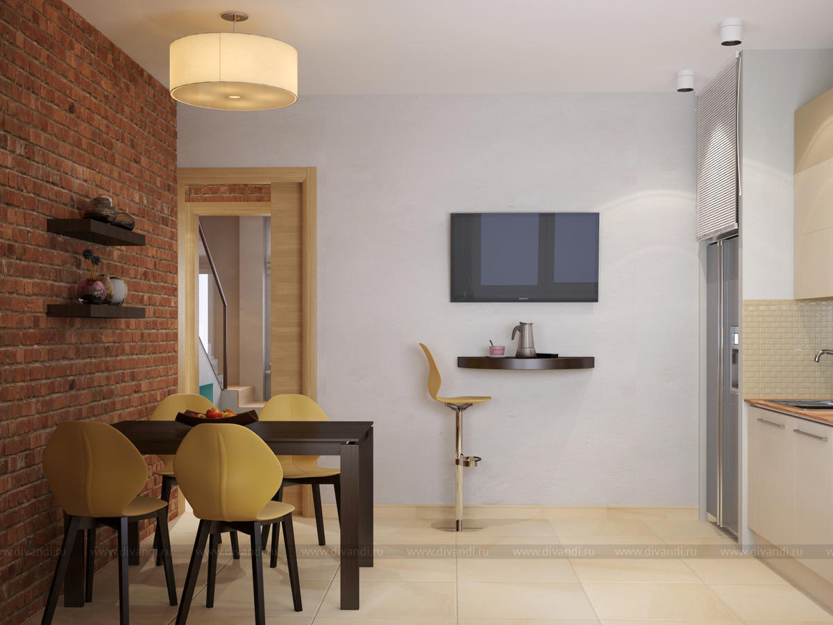 Кухня в этом проекте отдельное от гостиной помещение. Организована хорошая обеденная зона и небольшая "барная" для того, чтобы , например, выпить утром чашку кофе.