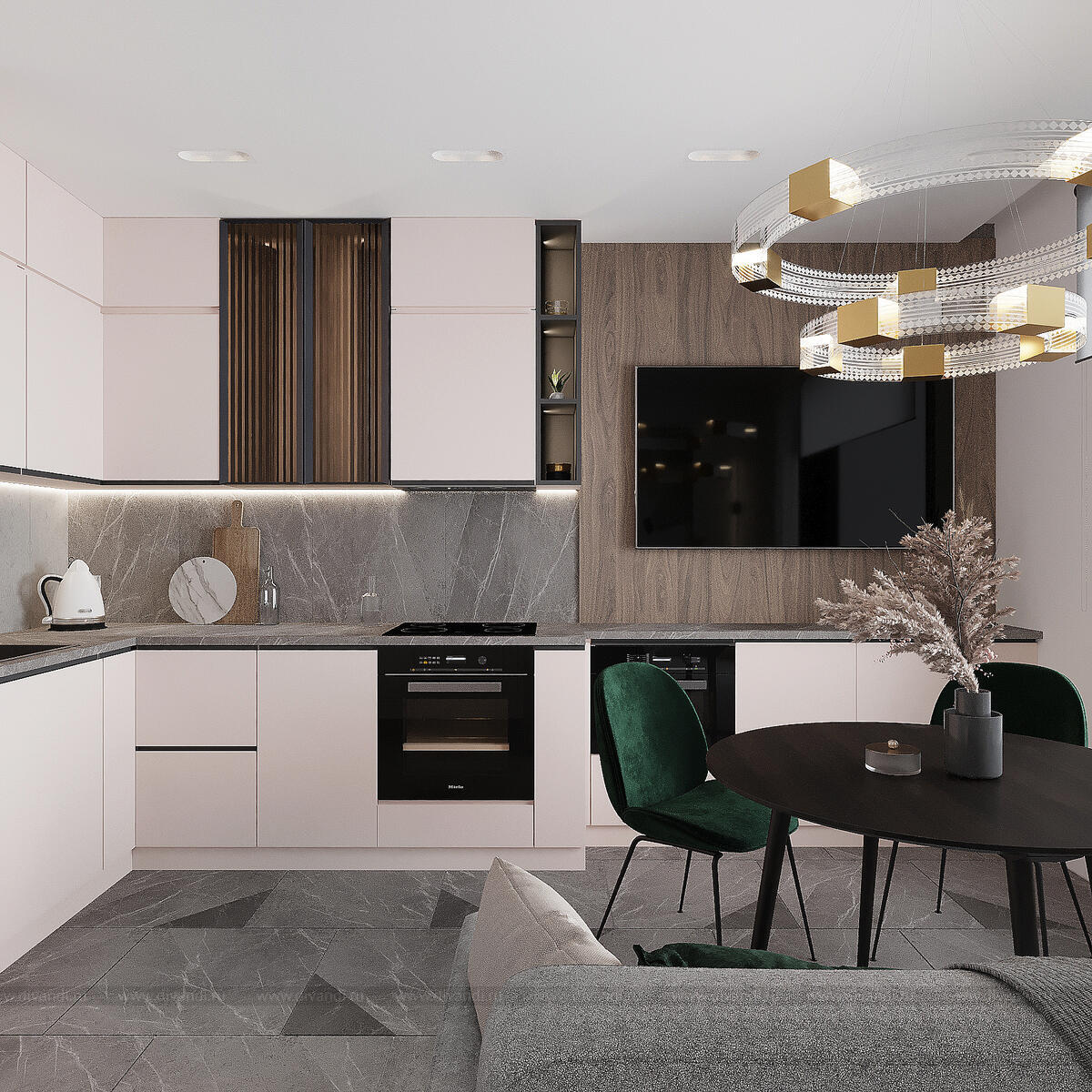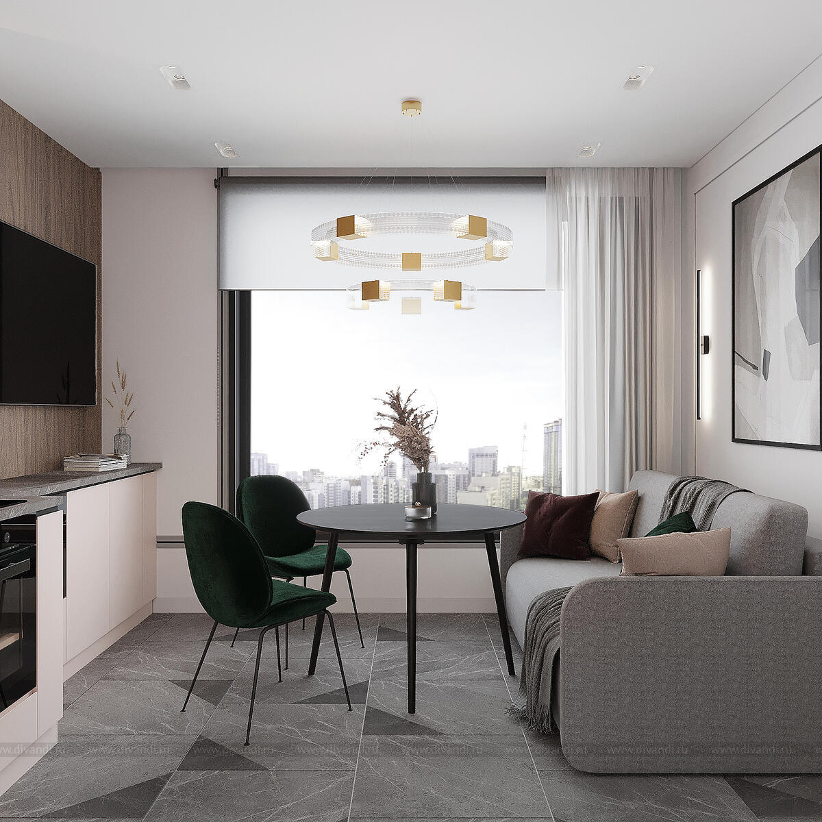 Уютная кухня-гостиная в любимом доме