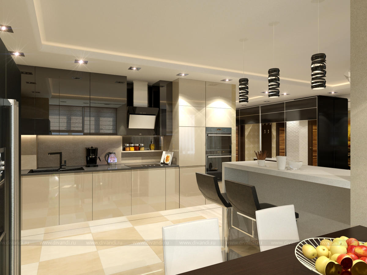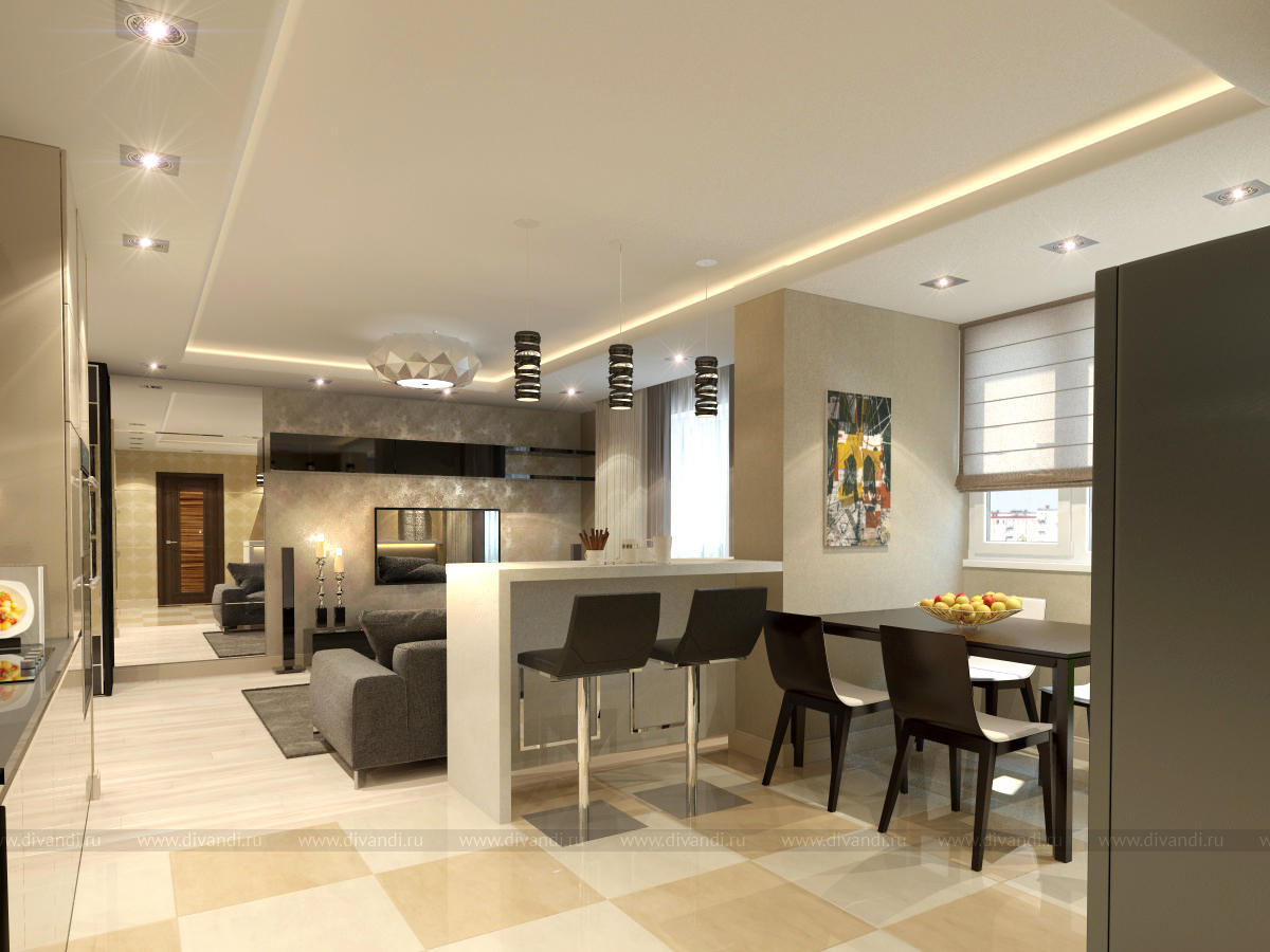 Тип проекта: квартира, кухня, гостиная