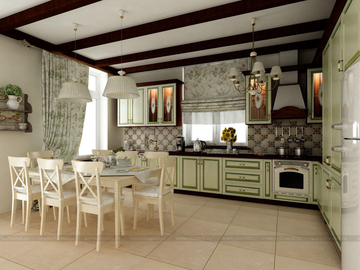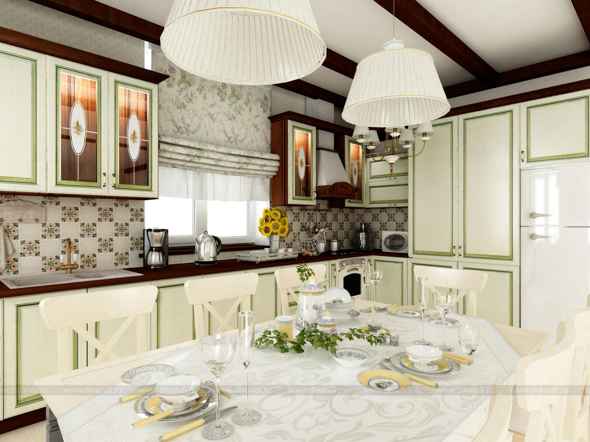 Дизайн интерьера кухни в стиле Прованс, коттедж в Кашино