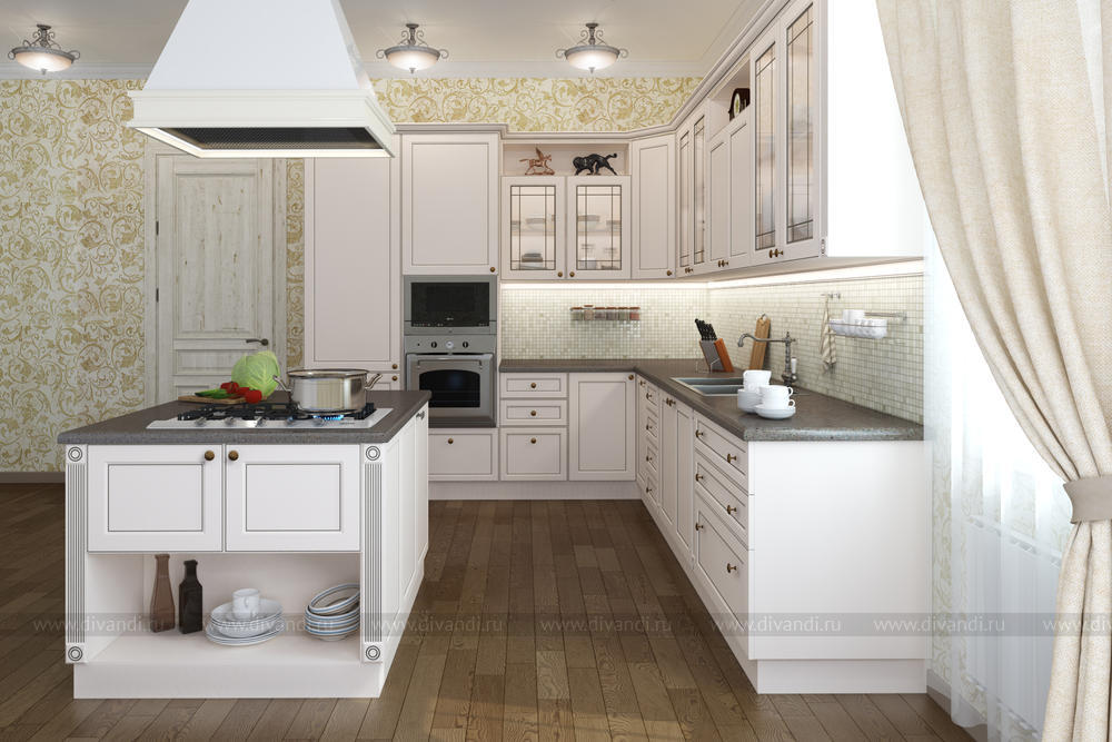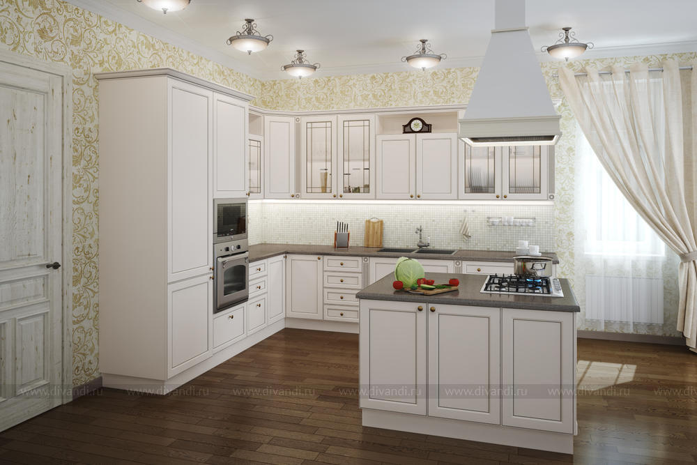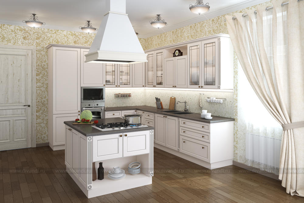 Кухня в стиле кантри с фасадами молочного оттенка - легкая и уютная, отлично подходит для дачи или коттеджа.