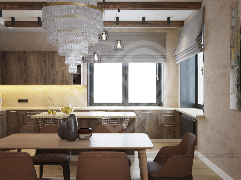 Уютная кухня-гостиная в любимом доме