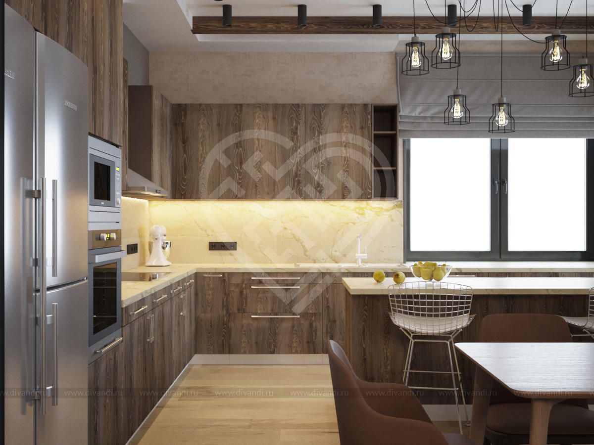 Кухня в стиле Лофт в загородном доме