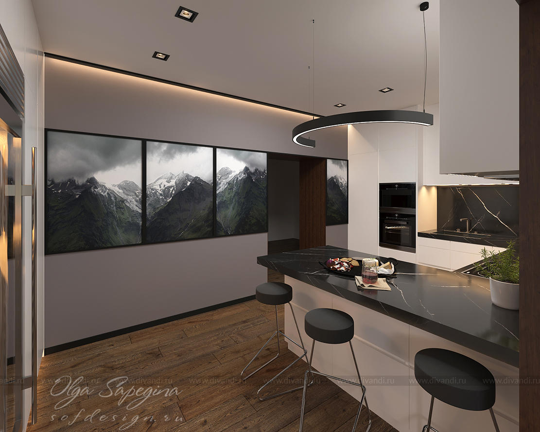 Кухня, как продолжение гостиной и темы природы в интерьере