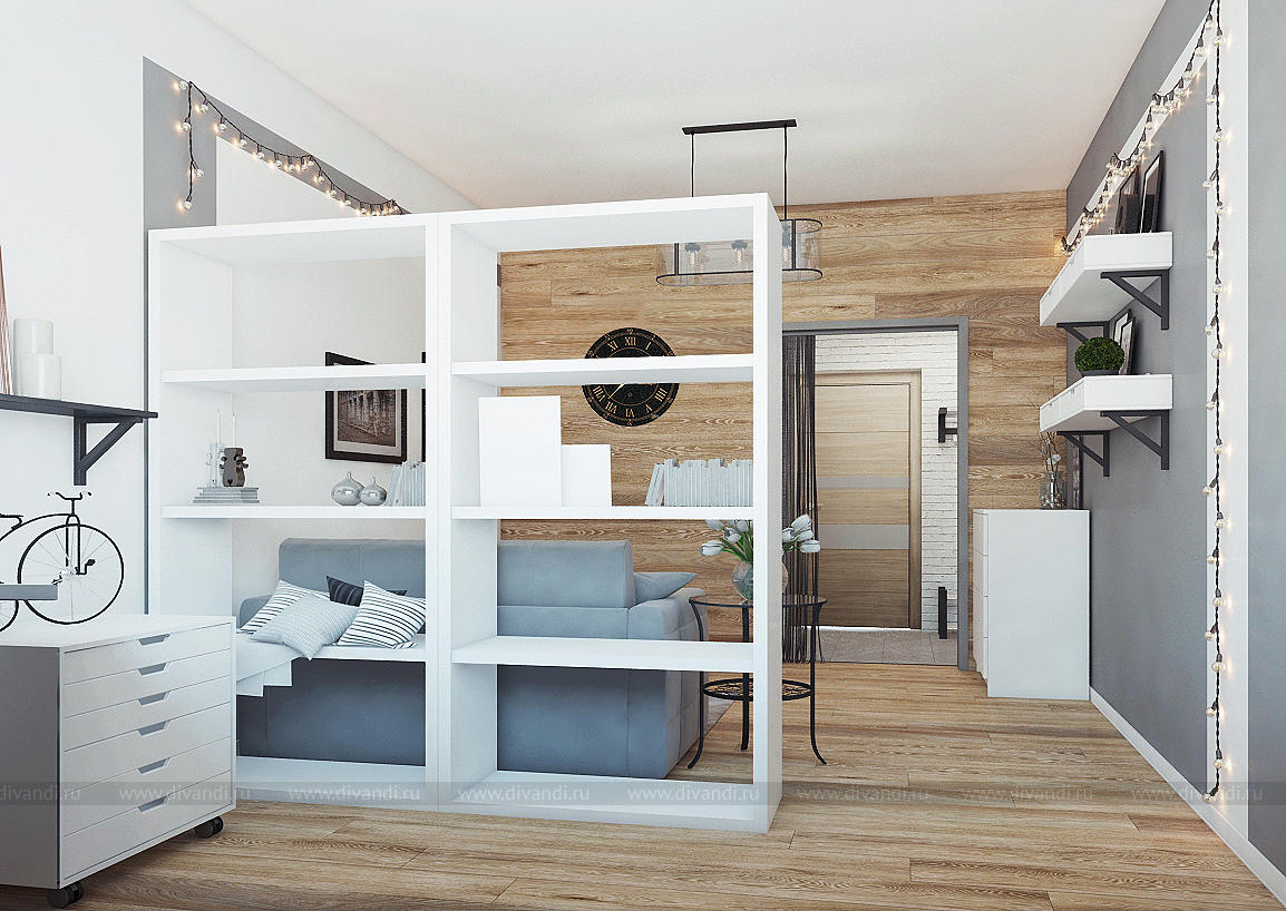 Квартира для девушки творческой профессии.Стиль современный, Заказчице очень хотелось, чтобы были организованы места для хранения в виде полок и коробок, чтобы каждая вещь лежала на своем месте.Мебель и полки -ИКЕА.