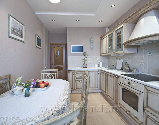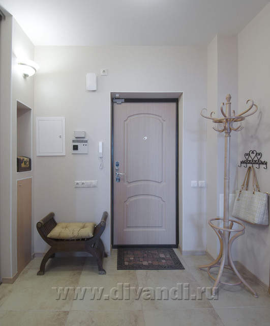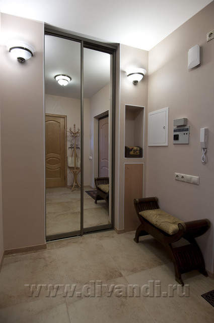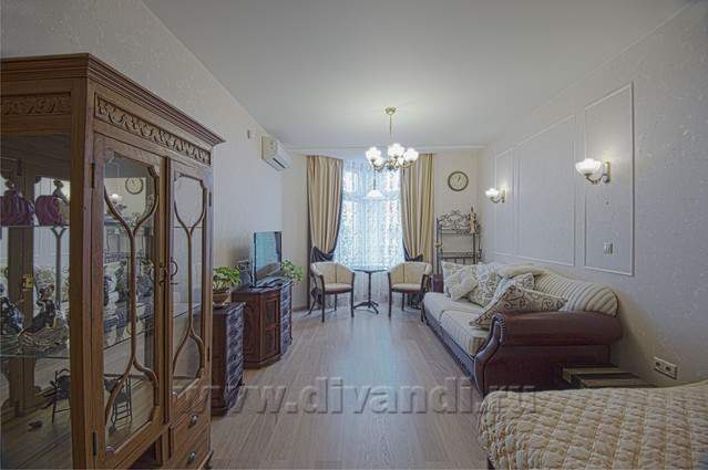 Данная квартира предназначена для проживания пожилой дамы. Интерьер выполнен в стиле лёгкой современной классики, сдержаной и не перенасыщеной излишним декором и мелкими деталями. Цветовая гамма — лёгкие пастельные тона, используемые материалы преимущественно натуральные.