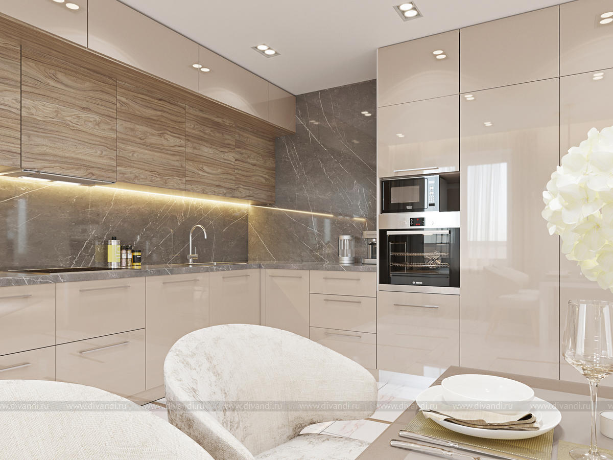 Уютная кухня-гостиная в любимом доме