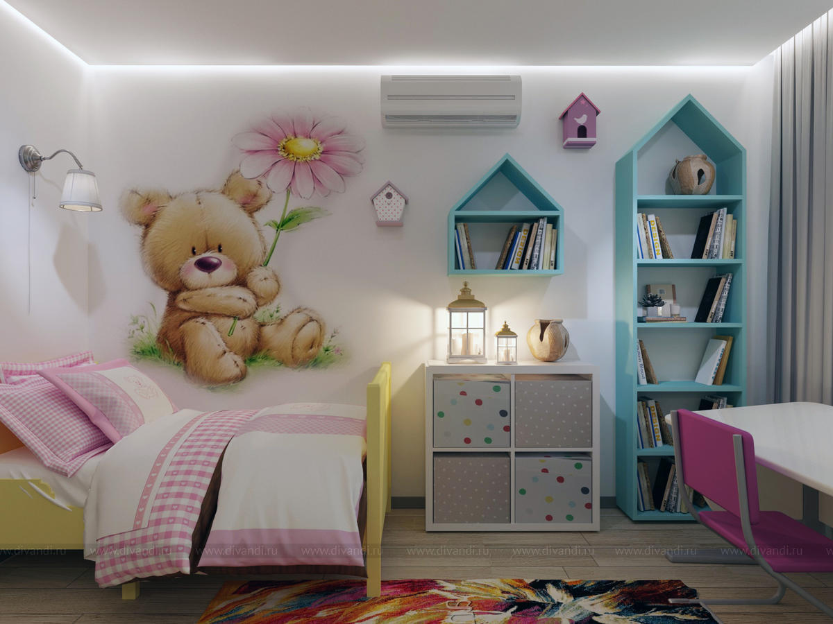 Дизайн интерьера комнаты для девочки "Фламинго"