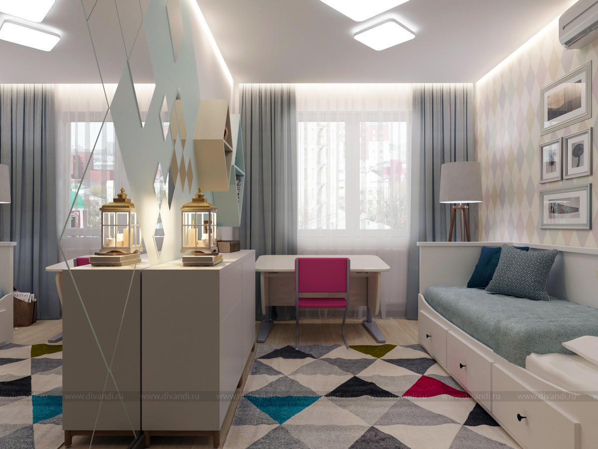 Дизайн интерьера комнаты для девочки "Фламинго"